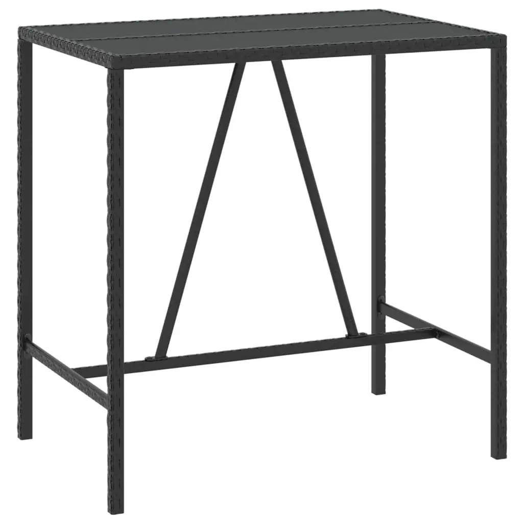 This 5 Piece Garden Bar Set is a fantastic blend of style and functionality, making it a brilliant addition to your outdoor space. It comes with a roomy rectangular bar table and four comfy bar stools, complete with thick cushions for enjoyable dining on balconies, patios, or during relaxed outdoor meetups. Its classic black color and smooth finish pair well with a sturdy design that can handle different weather types, whether you're hosting friends for drinks or just enjoying your morning coffee. Durable Materials: Made from weather-resistant PE rattan that provides great durability for outdoor use, keeping it looking good. The powder-coated steel frame gives it strength, making this set perfect for everyday use.Comfy Seating: Each bar stool has a thick, removable cushion secured with a zip, ensuring you can relax during long chats over drinks. Easy to clean, these cushions help keep your furniture looking fresh.Versatility: This set is great for dining, having a drink, or turning your space into a casual home bar. It fits right into any outdoor setup, ideal for social events or nice evenings outside.Elegant Aesthetics: With a modern minimalist vibe, this set is not just useful but also a lovely addition to your outdoor area, brightening up your garden or balcony.Easy Maintenance: The materials make it a breeze to clean, so there’s less time spent on upkeep and more time enjoying your outdoor space.