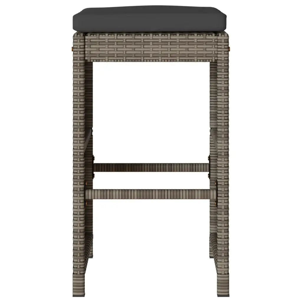 Vidaxl Garden Bar Stool Set Of 2 Grey Pe Rattan 15.7 X 15.7 X 29.9 In