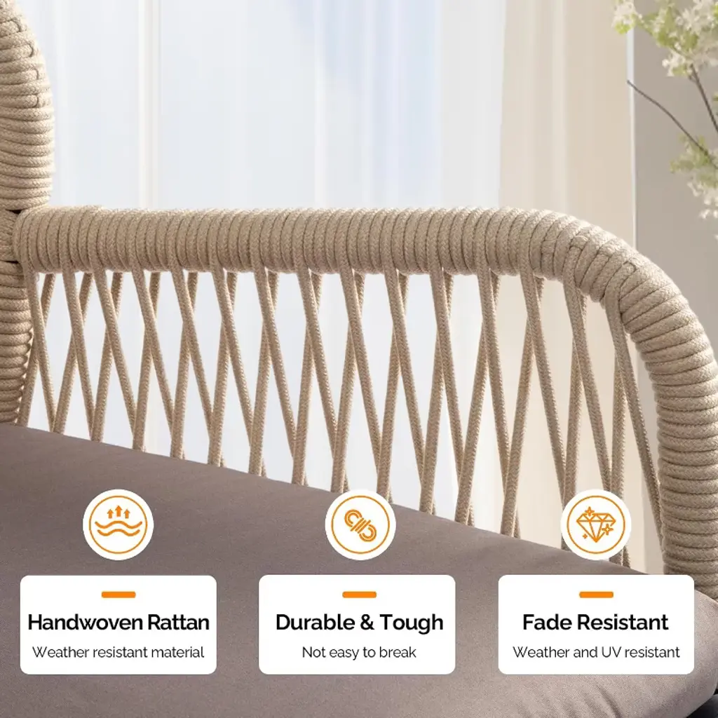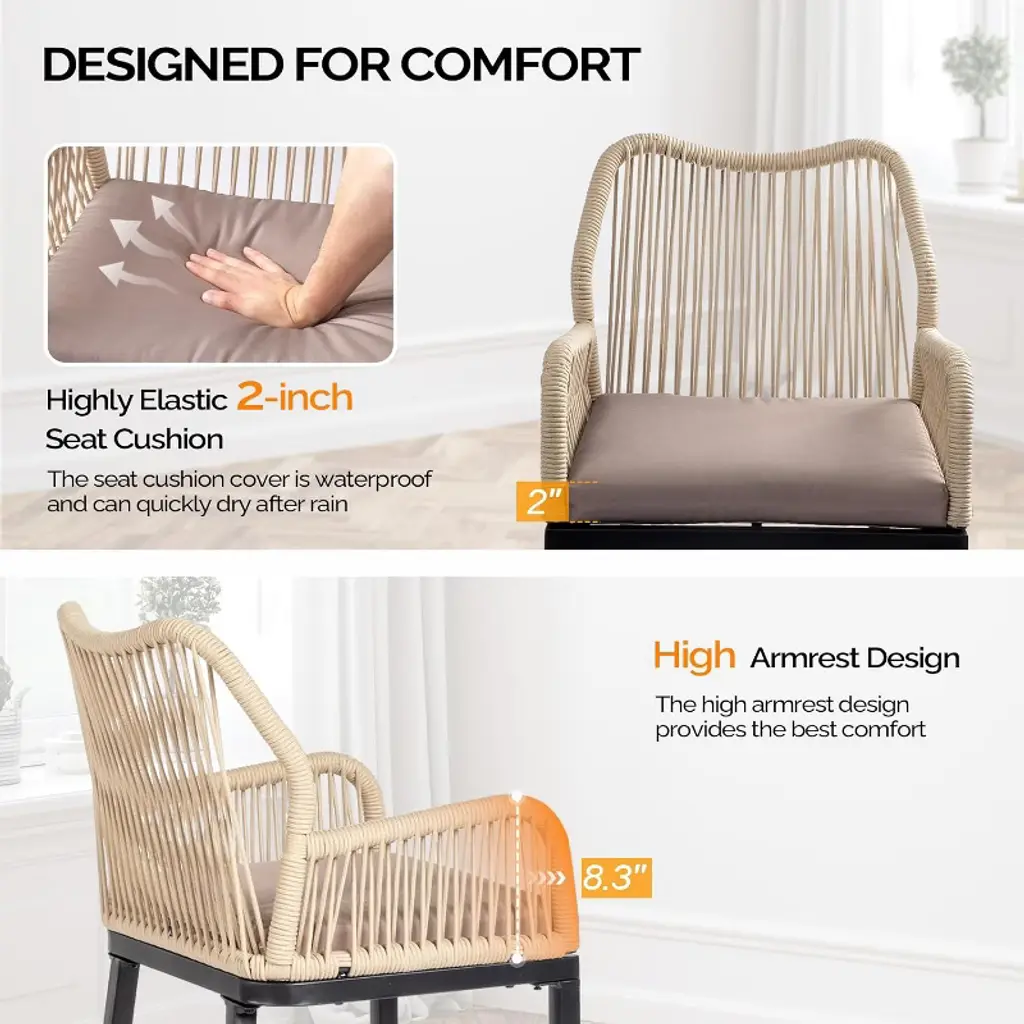 This outdoor wicker bar stool blends contemporary style with exceptional functionality. The aluminum frame offers lightweight durability while the weather-resistant wicker withstands outdoor elements. Featuring a 2" high-resilience foam cushion and ergonomic backrest curvature for extended comfort. The armrests provide extra support when standing, and the 20.28" compact base optimizes space without compromising stability. Perfect for patios, poolside, home bars or kitchen islands - a stylish addition to any space. Key Dimensions: Overall: 20.28"L x 20.28"W x 41.34"H Seat Height: 24.41" + 2" cushion = 26.41" Seat Width: 20.87" | Seat Depth: 16.93" | Backrest Height: 17.72"