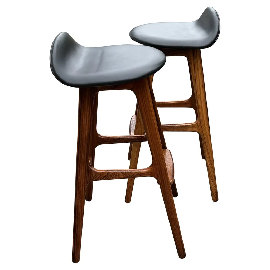 Product details vintage bar stool od61 by erik buch for oddense maskinsnedkeri a / s features * very high quality workmanship * material: leather, teak, rosewood * newly upholstered and reupholstered * manufactured by oddense maskinsnedkeri a / s, model od 61 * designed by erik buch dimensions & condition the stools are in very good condition and are newly upholstered and reupholstered (see pictures) height: 85 cm width: 40 cm depth: 45 cm