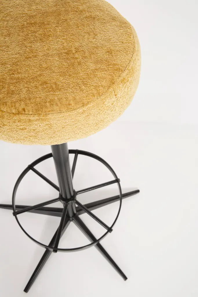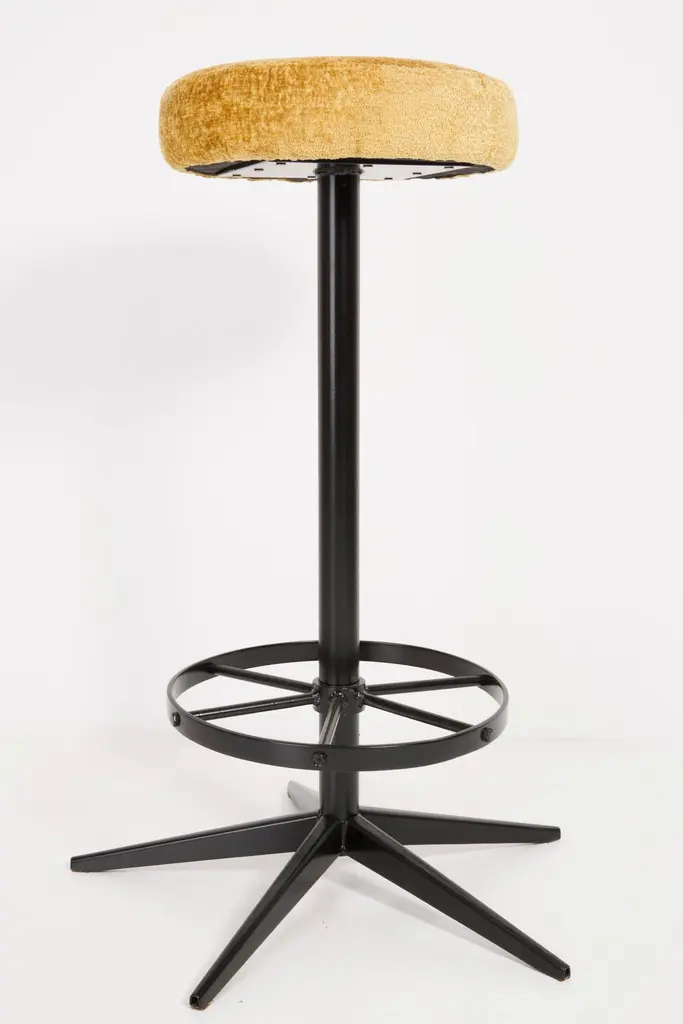 Stool from the turn of the 1960s. Produced in Germany. Beautiful, well crafted yellow Italian upholstery. The stool consists of an upholstered part, a seat and steel black legs. Not regulated. The height is constant.