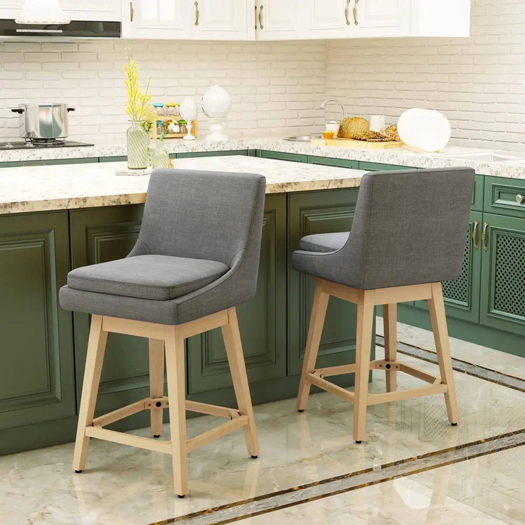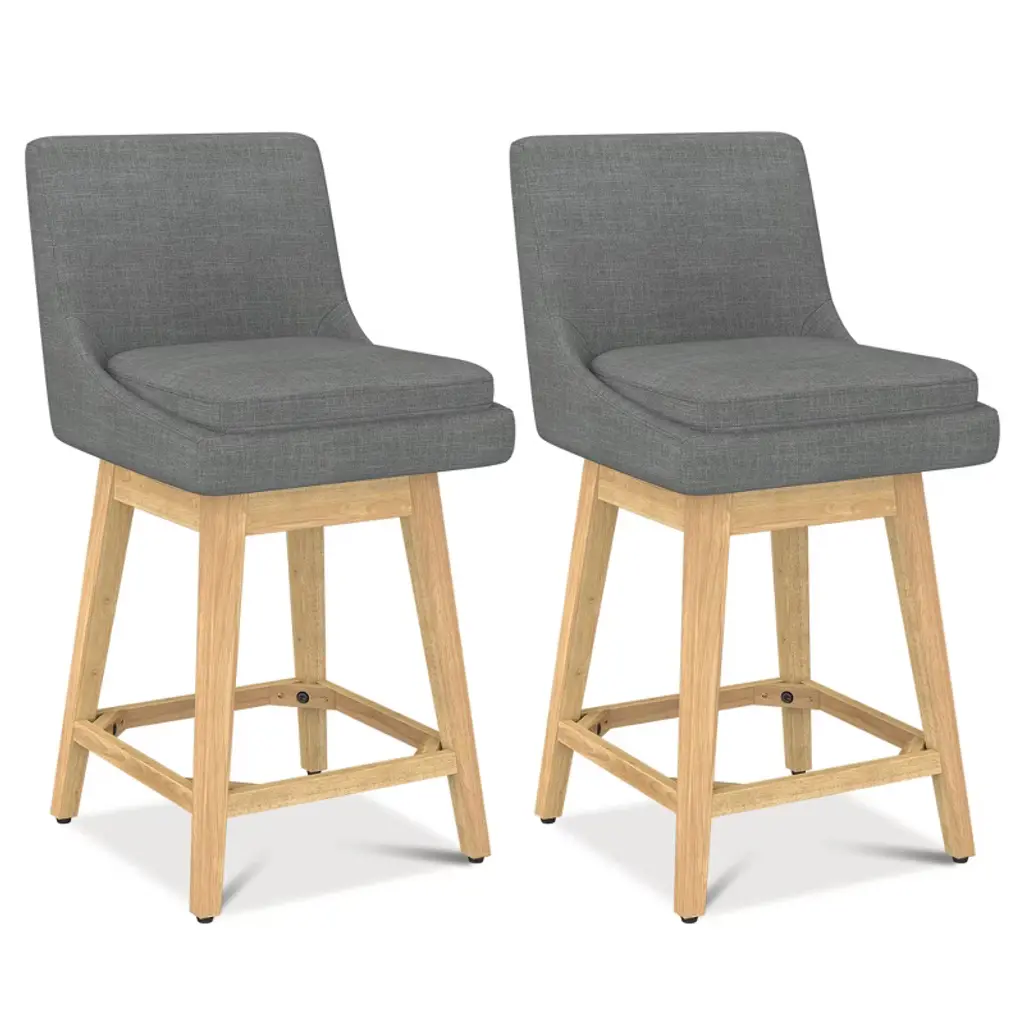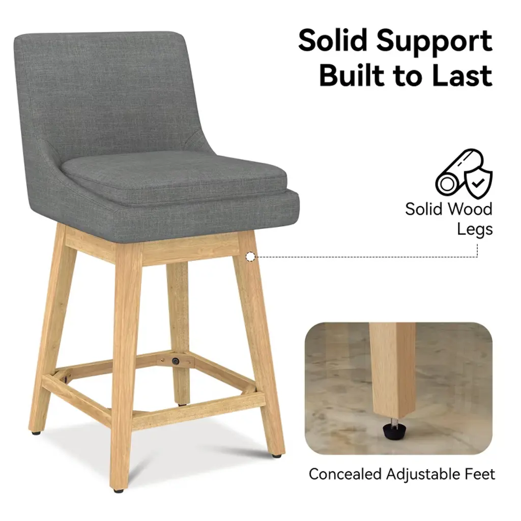 Vipbear Counter Height Swivel Barstool With Back Set Of 2, Upholstered Bar Stool, 26.8" H Seat Height, Solid Wood Legs, Modern Bar Stools