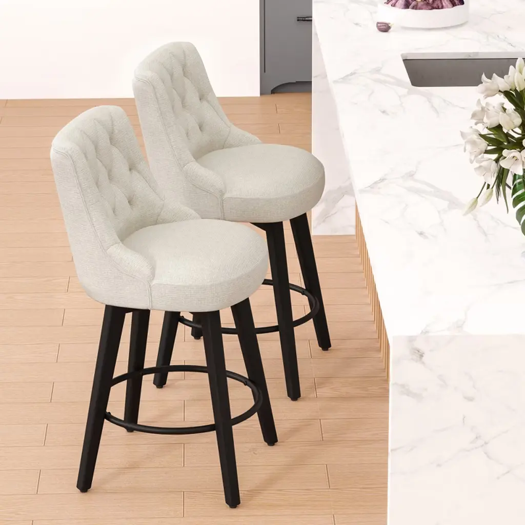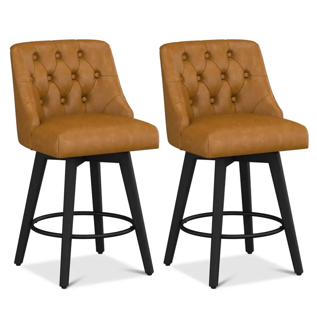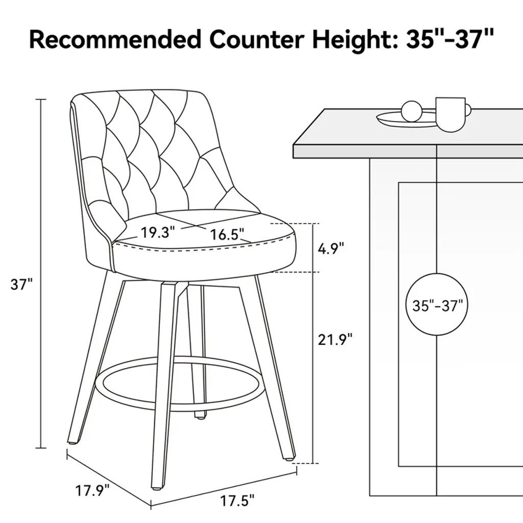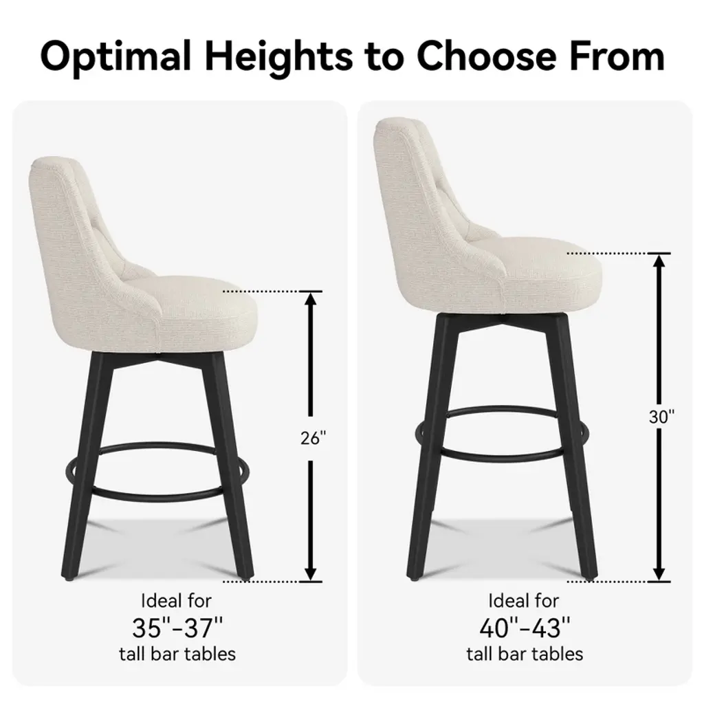 Vipbear Swivel Counter Height Bar Stools Set Of 2,26.8 Inch With Back And Round Seat,upholstered Barstools With Wood Leg