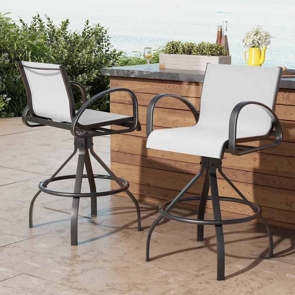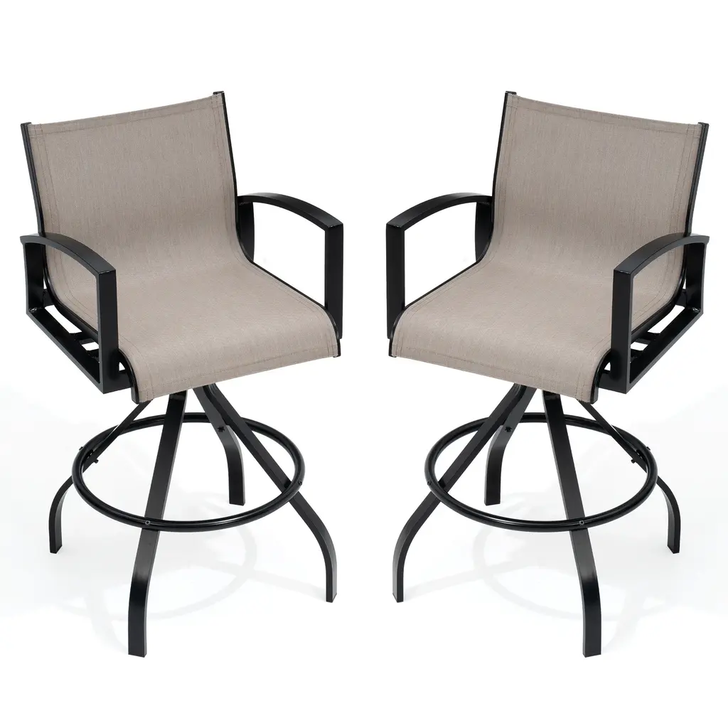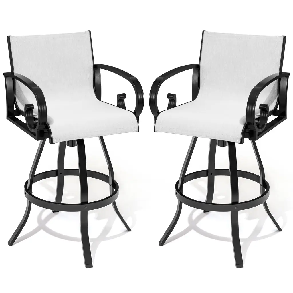 Update your porch and patio area with these VredHom swivel patio bar stools. These stools have aluminum frames and textilene sling seats for optimal durability and comfort. And the seat can be rotated 360 degrees. Complete your patio dining or bar space with this set of outdoor bar stools.Features:Dimensions: