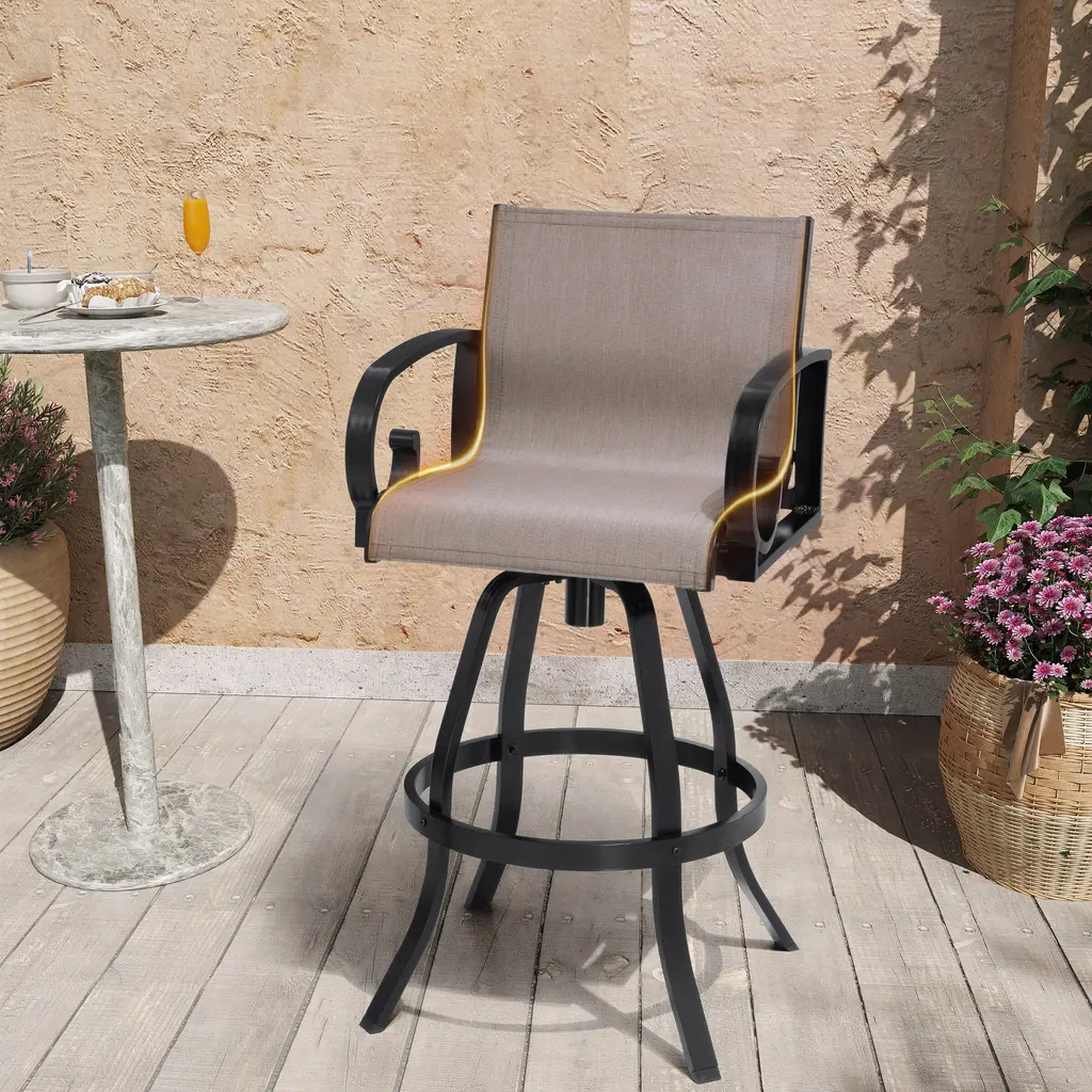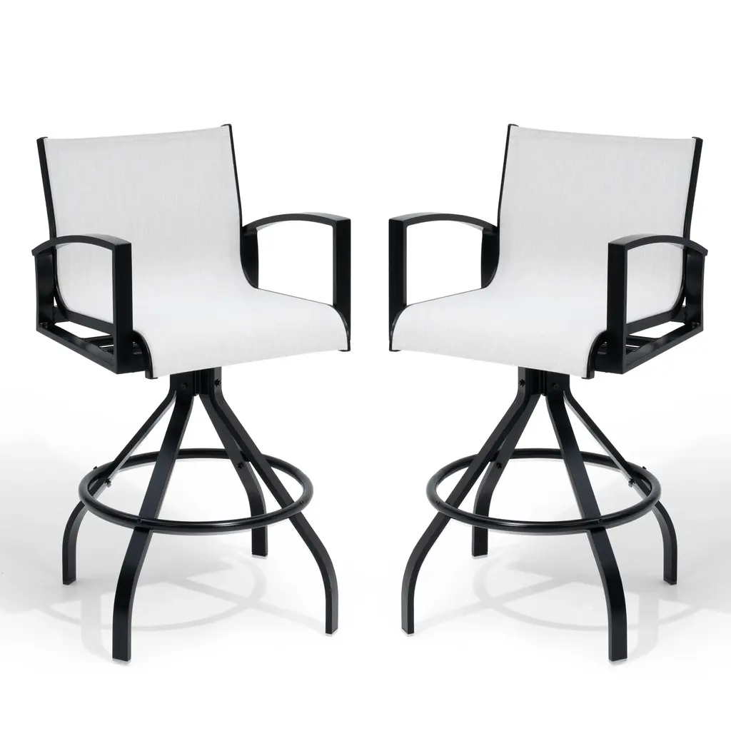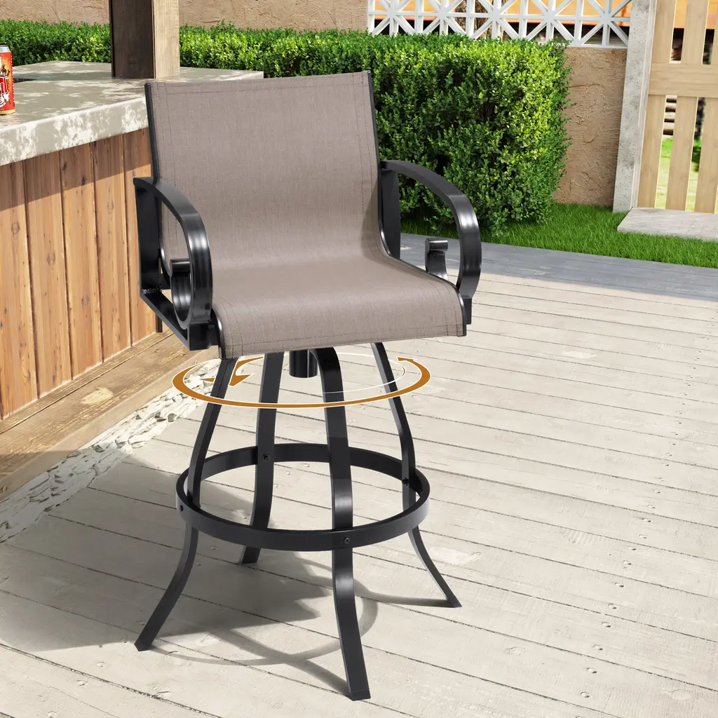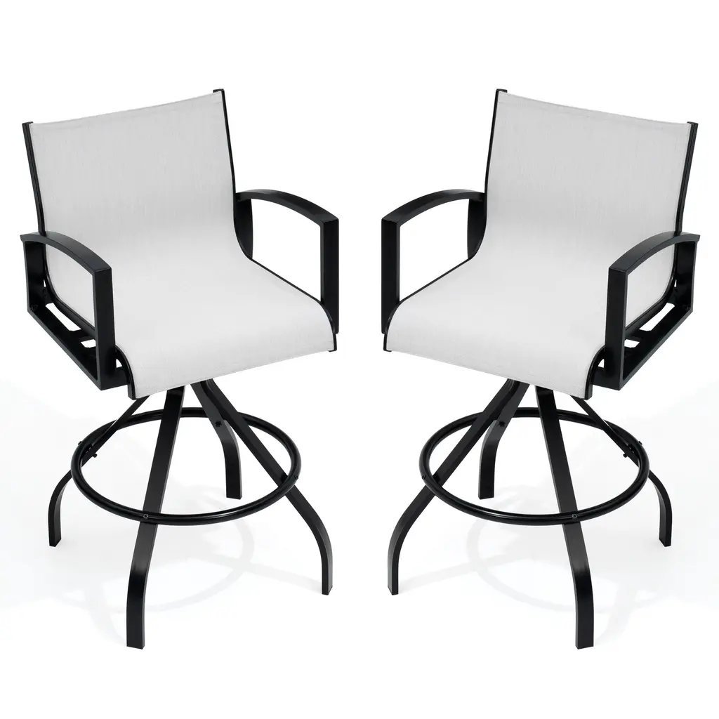 Update your porch and patio area with these VredHom swivel patio bar stools. These stools have aluminum frames and textilene sling seats for optimal durability and comfort. And the seat can be rotated 360 degrees. Complete your patio dining or bar space with this set of outdoor bar stools.Features:Dimensions: