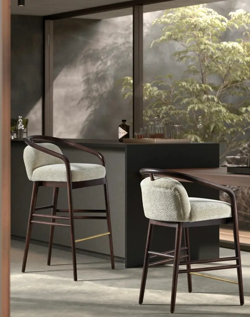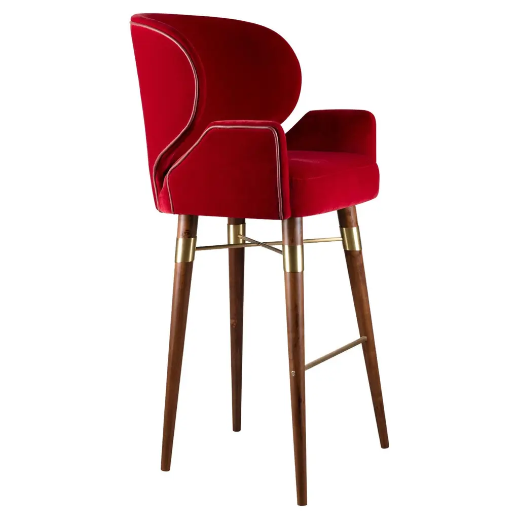 The Essex Bar Stool combines the natural elegance of walnut wood with the luxurious softness of velvet upholstery, creating a seating piece that adds both style and comfort to any space. Its sleek design and refined proportions make it an ideal addition to modern kitchens, home bars, or upscale hospitality settings.Crafted with a solid walnut frame for durability and topped with plush velvet for a touch of luxury, this bar stool offers a sophisticated and inviting seating experience. The Essex Bar Stool is the perfect fusion of timeless craftsmanship and contemporary elegance, bringing a chic and functional element to your space.The height and dimensions of each piece can be customized to suit your needs.