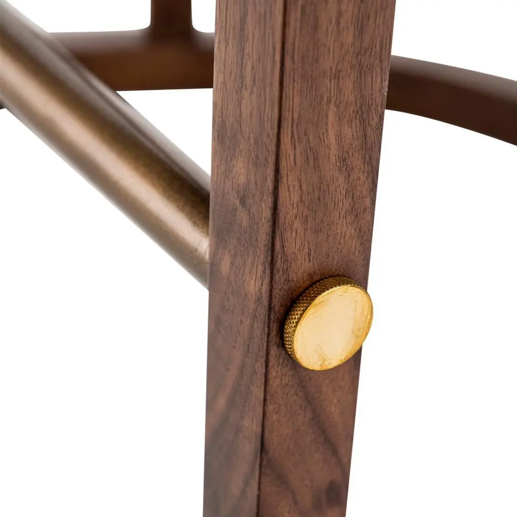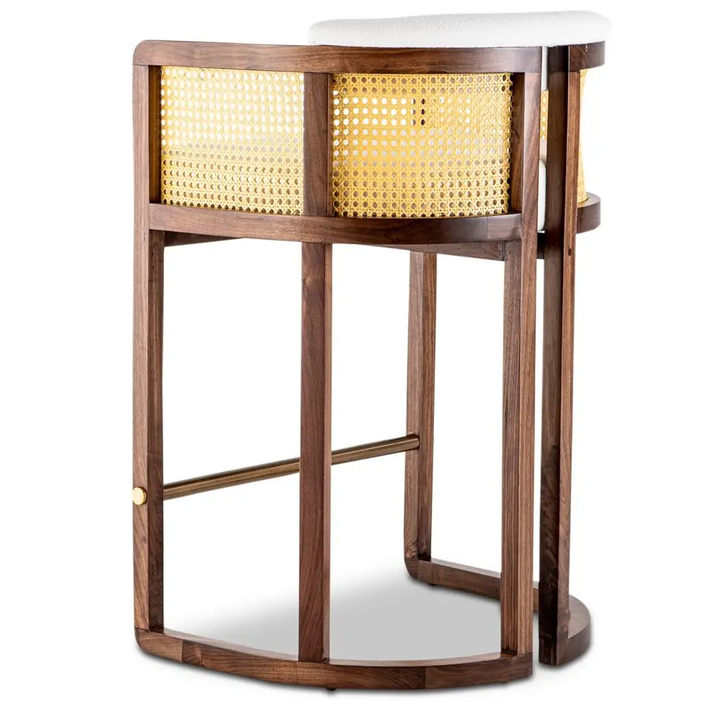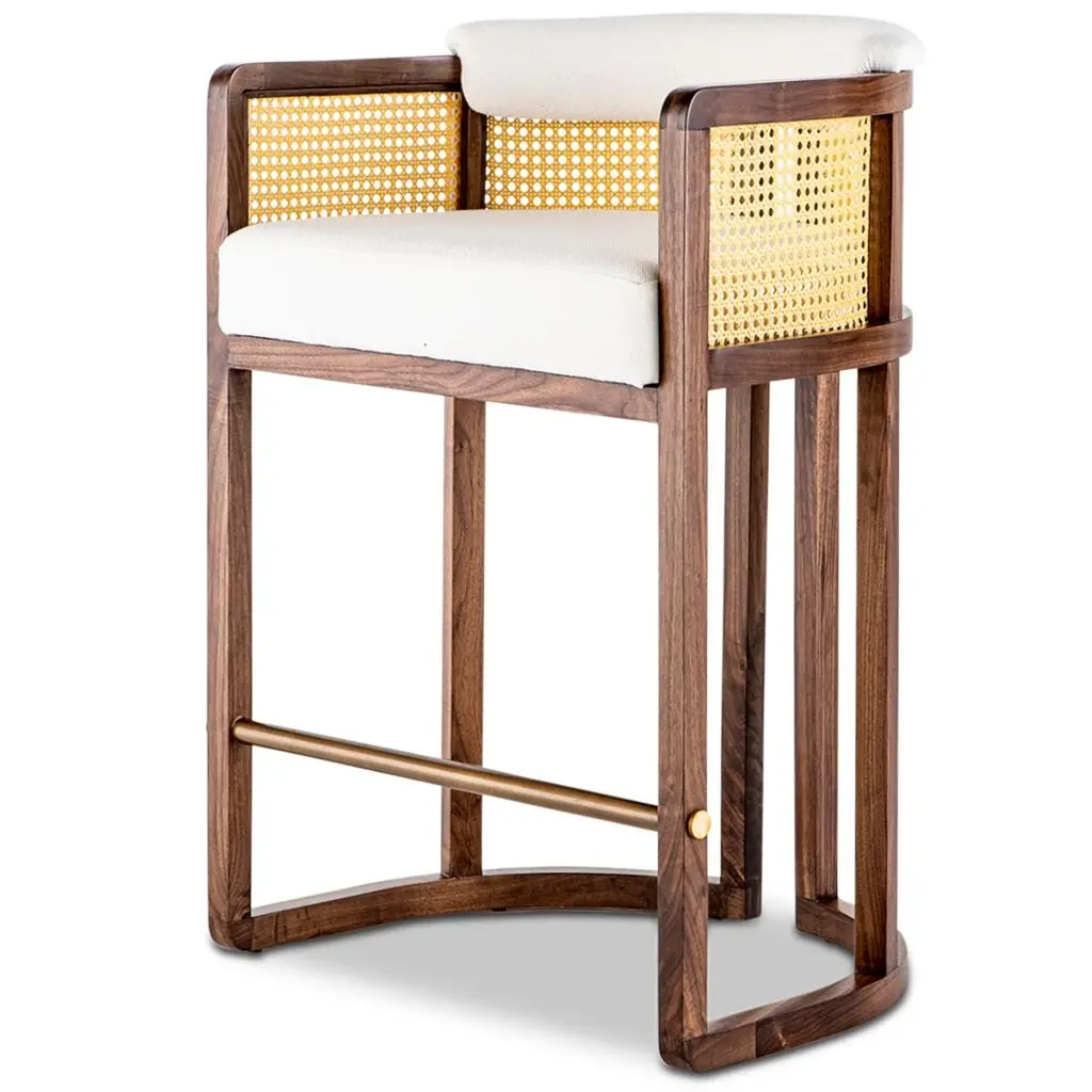 Walnut Timber, Rattan, Solid Brass, Bronzed Steel And Linen Livingston Bar Stool
