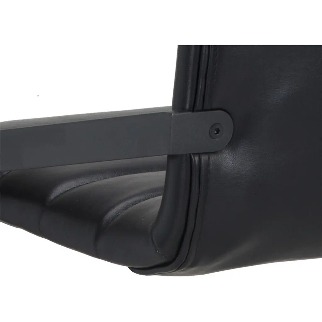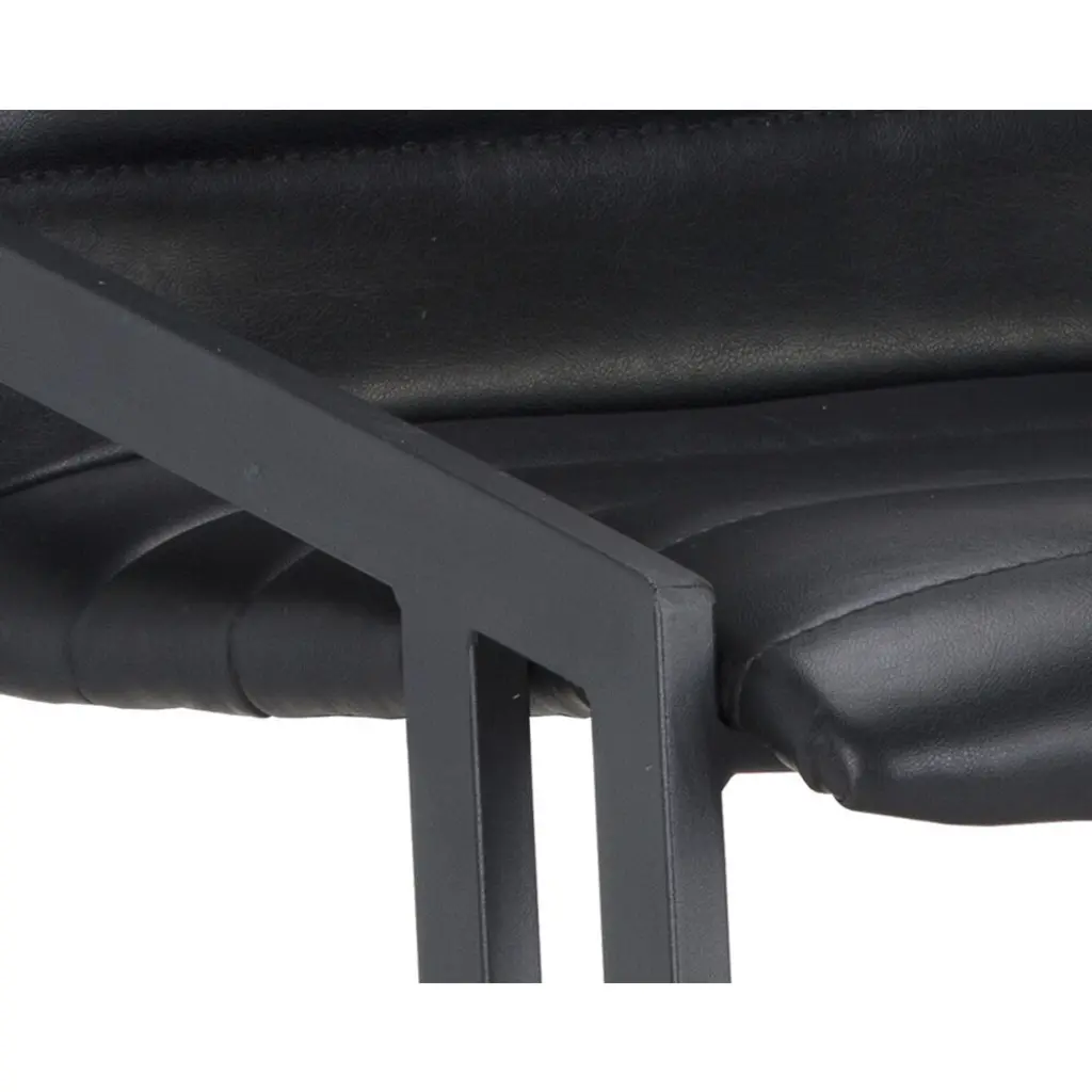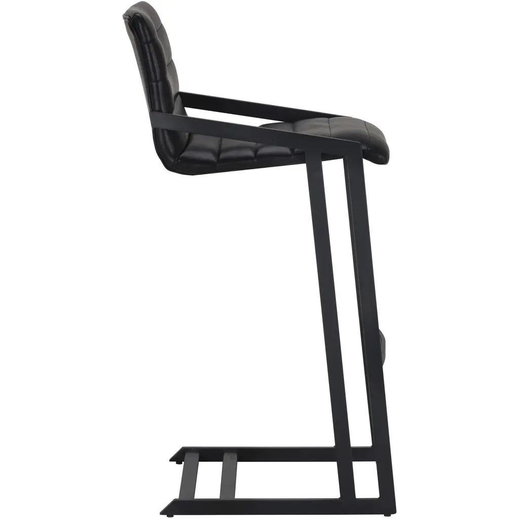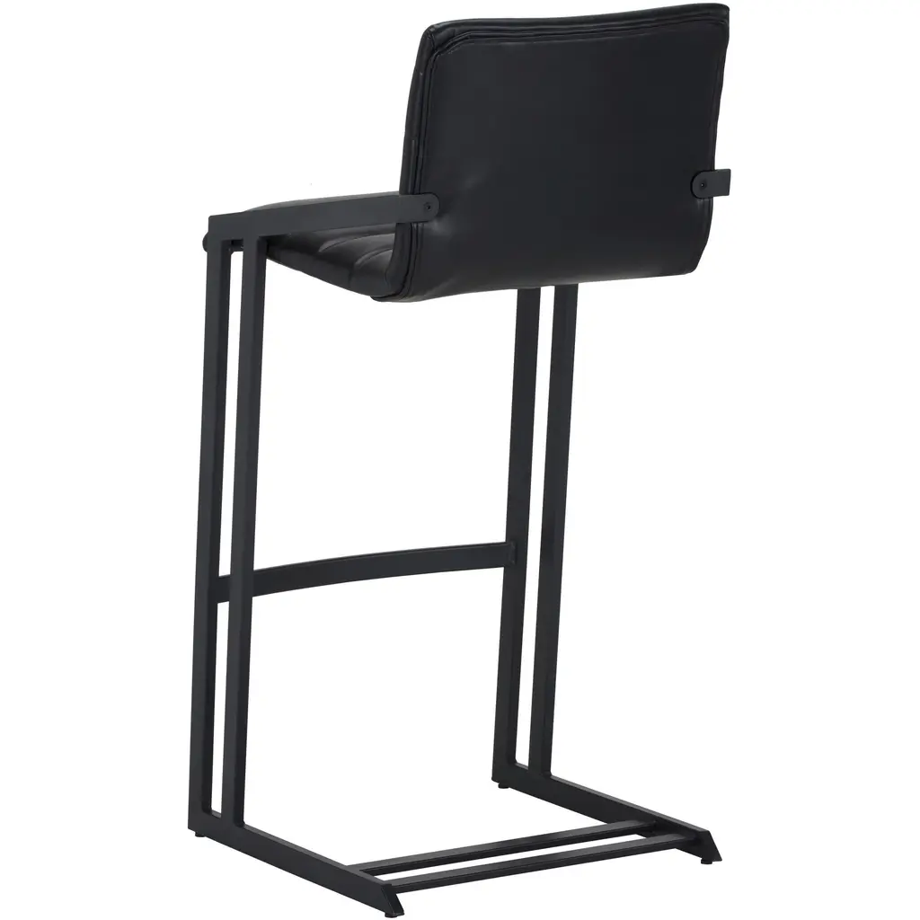 An industrial chic barstool. Features horizontal channel tufting on the seatback with an exposed black steel frame. Stocked in cantina black bonded leather. Suitable for various dining, kitchen and bar spaces of all sizes. Handle with Care: This design has been crafted with bonded leather. Bonded leather is a blend of reconstituted leather and synthetic materials crafted to reflect the natural characteristics of leather as such, colour variations, markings, wrinkles, grooves and light scratches are acceptable and appreciated characteristics. No two pieces are alike. Visit our Product Care page for more information on how to ensure the lasting beauty of this piece.