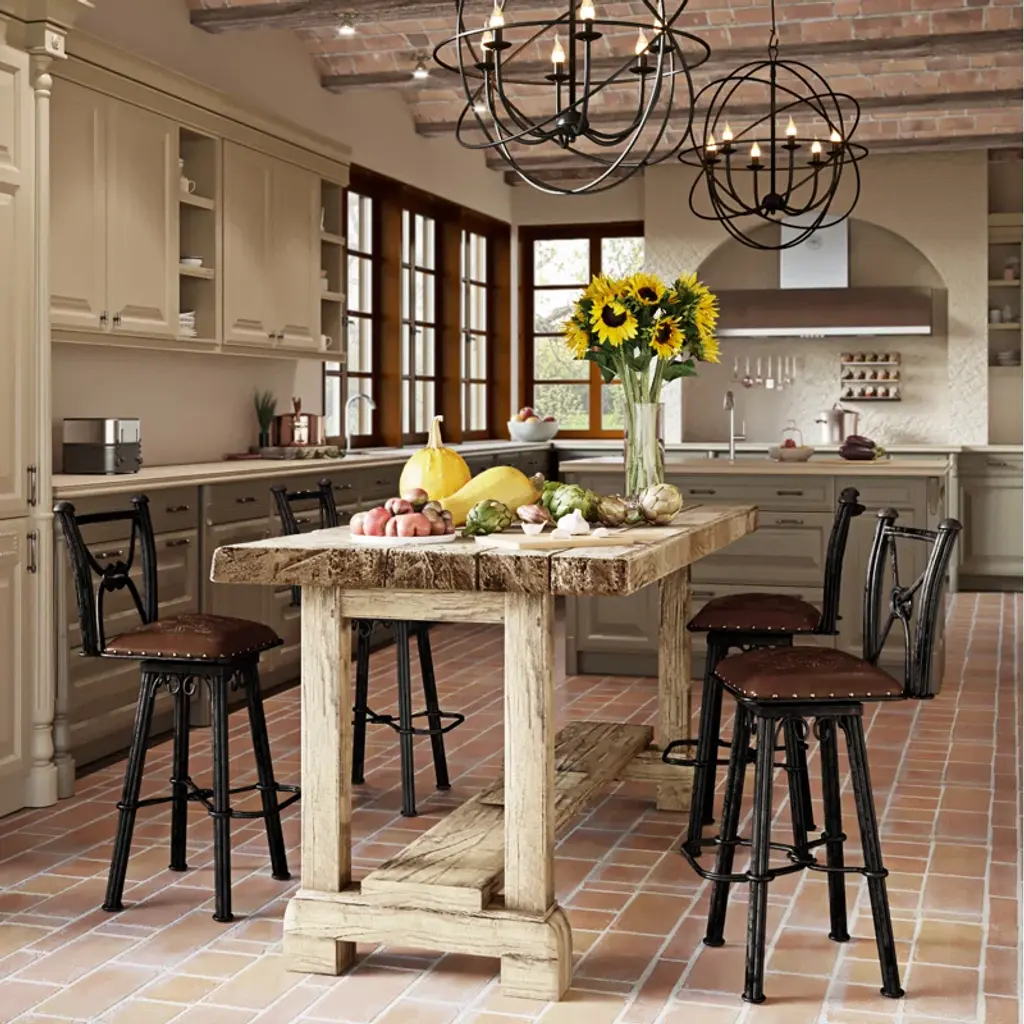 This bar stool will make a beautiful statement in your home when wanting to achieve an elegant arrangement. Use this stool in the kitchen, dining room, bar or game room. The hand tooled saddle leather and decorative nail heads adorn the seat. The 360 degree swivel seat allows you to swing around effortlessly.