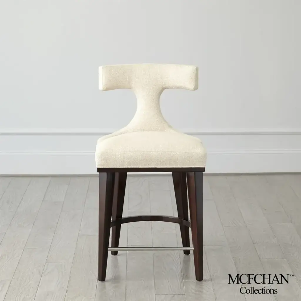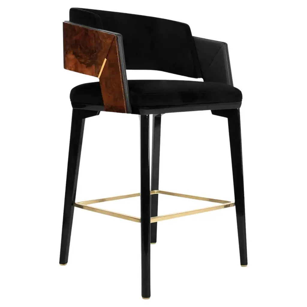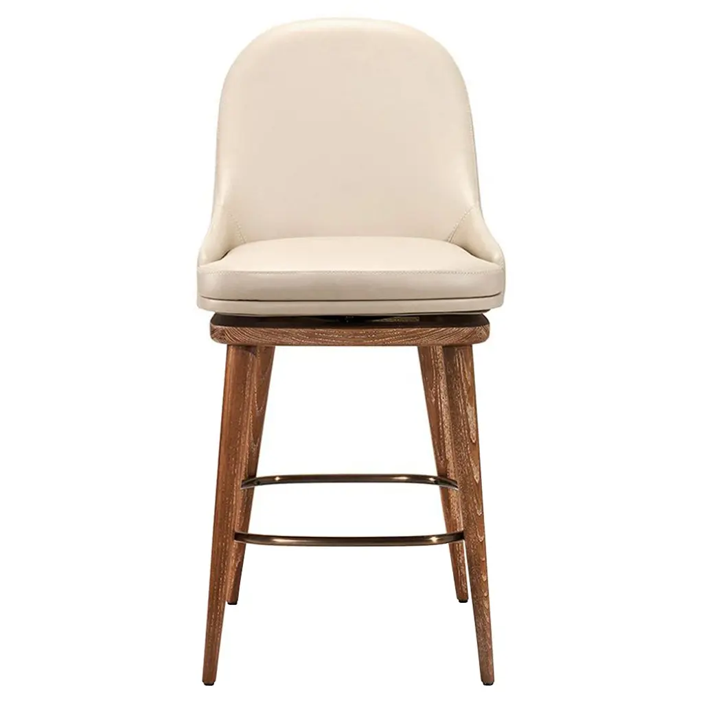 Bar stool with rubberwood frame. Nylon glides. Overall: 22"L x 23.25"W x 42.75"T. Seat: 18.5"D x 30"T. Arm height: 37"T. Brass foot rest: 13.5" from floor. Imported. Boxed weight, approximately 40 lbs. undefined