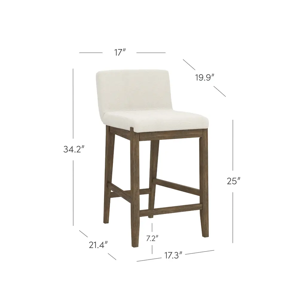 Kick your feet up in style with our Gracie bar stool. With an exposed wood back and sleek modern design, Gracie is sure to stun. This bar stool combines a wire brushed dark brown wood finish and a cream boucle cushion for ultimate comfort and style. It boasts a modern silhouette with tapered legs and a curved seat, making this bar stool the star of any kitchen. So grab your drink of choice and sit back in full comfort on these made-to-last bar stools.
