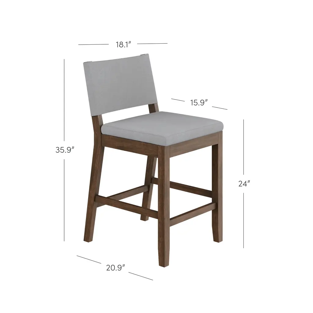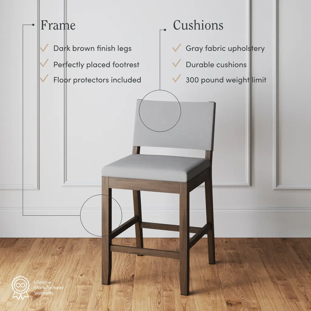 Meet the original Linus Bar Stool--the design that inspired our bestselling dining chair. With a 24" seat height, itユs made for kitchen islands and counter-height tables. Crafted with a solid wood frame in a rich dark brown finish and a reinforced fabric backrest that keeps its shape, Linus balances everyday comfort with lasting support. Natural wood grain variations ensure each stool has its own unique character, making every seat feel just a little more special.