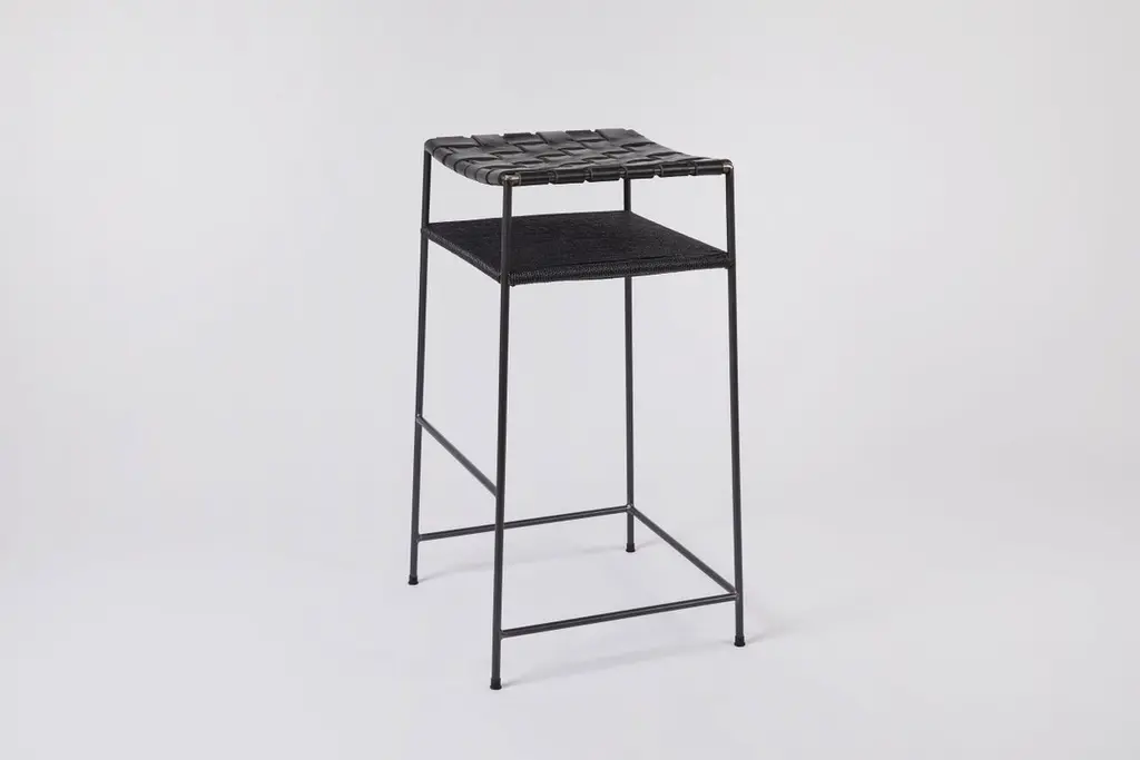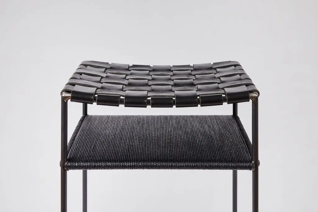 The leather seat is woven by a master weaver with decades of experience.The danish cord shelf is hand-woven by a master weaver with over 40 years experience.We use 70% recycled steel for the frame. For an additional charge the frames can be plated in bronze, polished nickel, or brushed nickel. Designed by a former art dealer who represented contemporary artists for over 30 years, including some of the giants of minimalist art. The inspiration the designer took from working with minimalist artists over decades is realized in the principles of simplicity, honesty, and utility at the heart of MIlwood Design. Hand made locally in Venice, California.