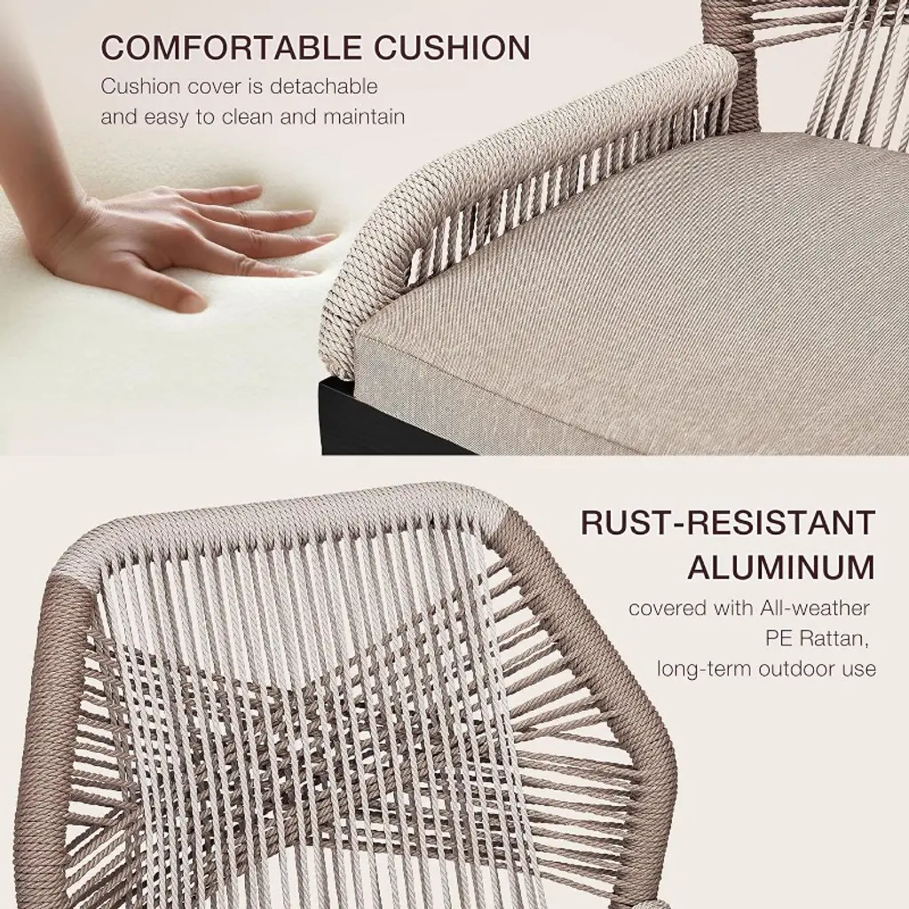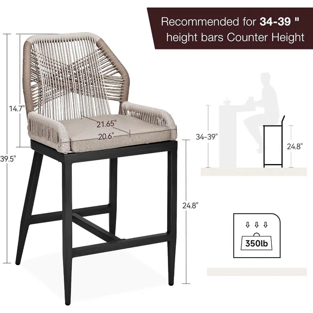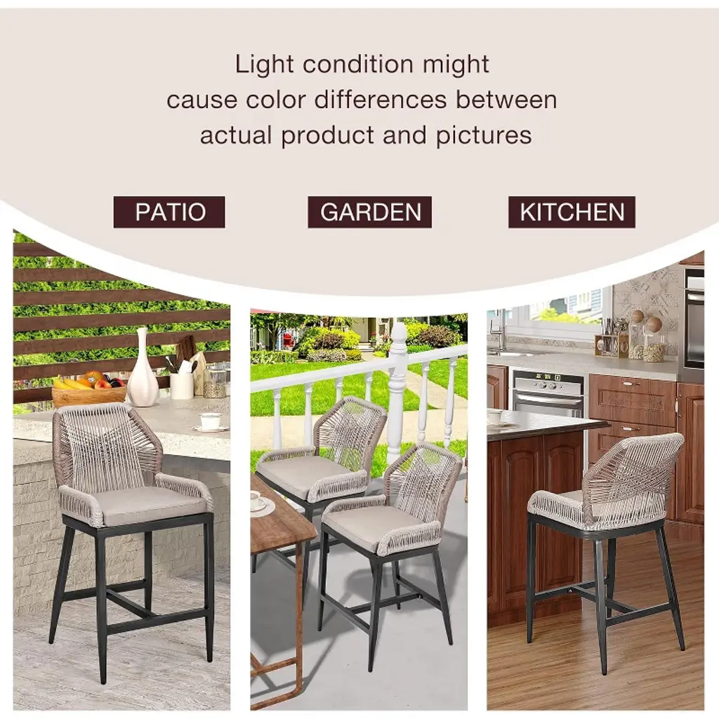 Woven Outdoor Counter Height Bar Stools Chairs Set of 2, Rattan Garden Counter Stools with Aluminum Frame for Kitchen, Patio, Garden