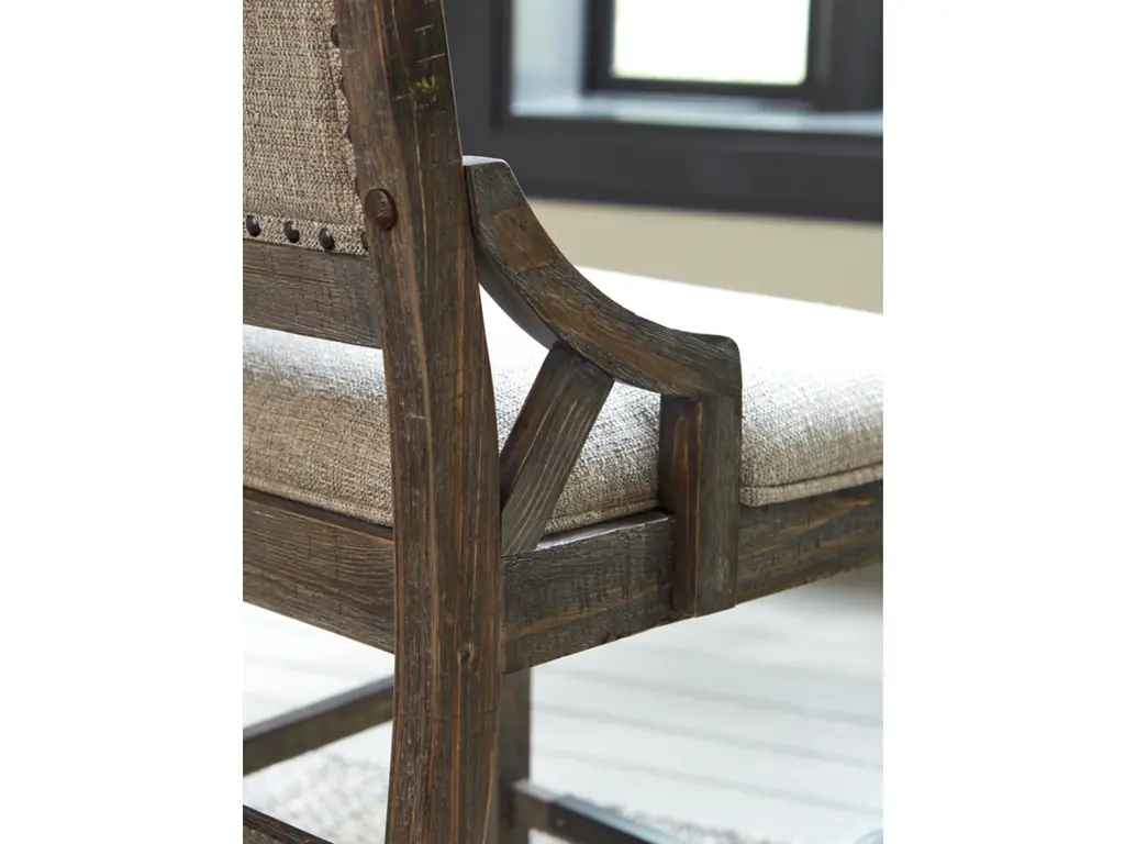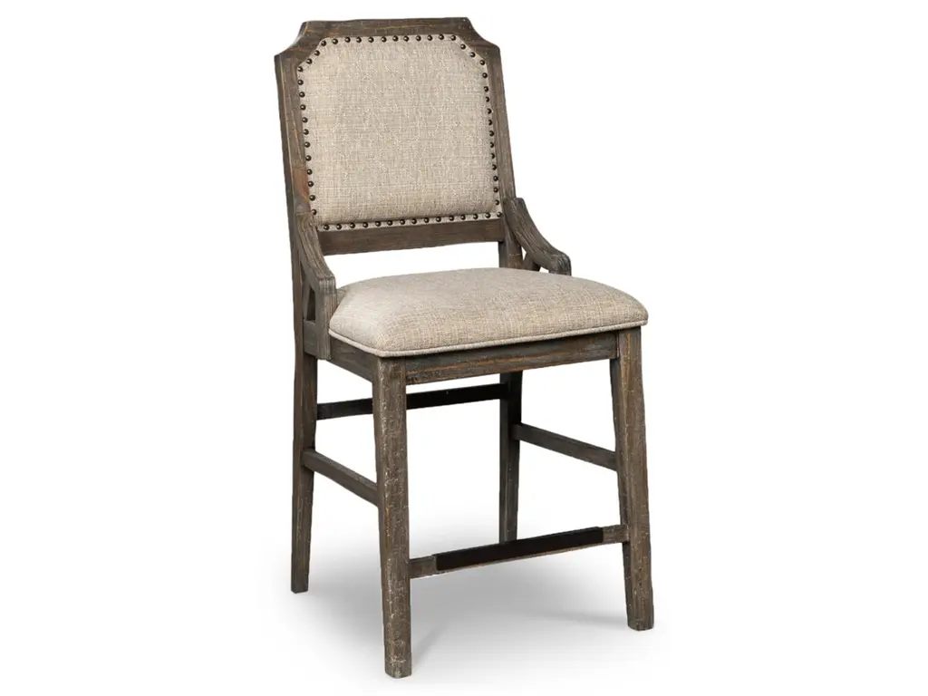 Inspired by heavy and hearty lodge-style furnishings from days gone by, the Wyndahl upholstered bar stool brings the past brilliantly into the present. Enticing with a distressed aged pine color finish with light wire-brushed texture, this richly styled bar stool with textural beige upholstery is reserved for those who appreciate furniture with great presence.