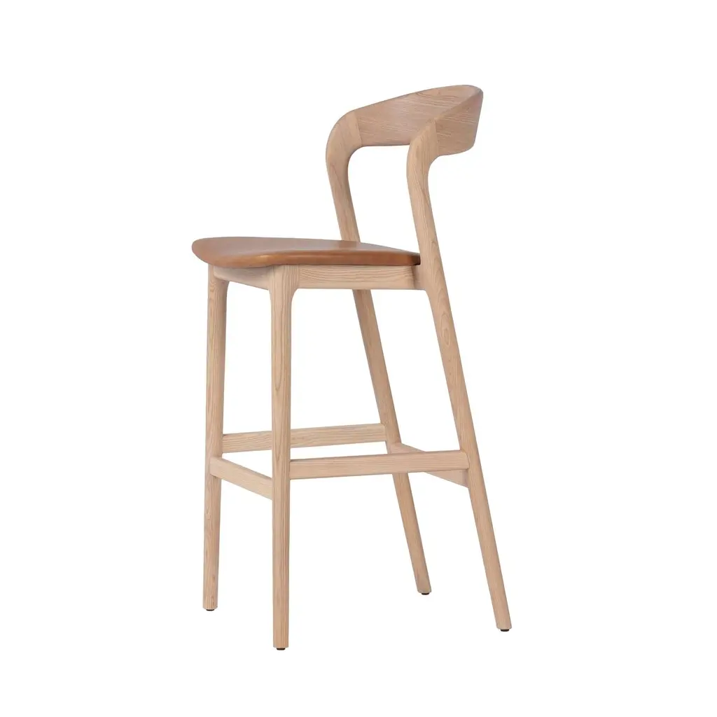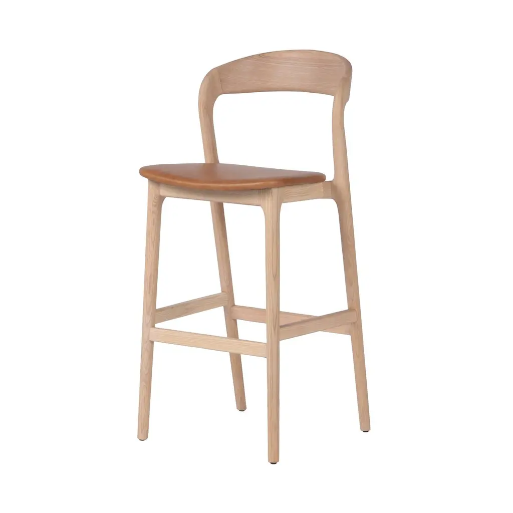Modern monochrome, perfectly sized for the bar. Inspired by simple Scandinavian styling, solid ash forms a shapely open frame for top-grain leather seating.