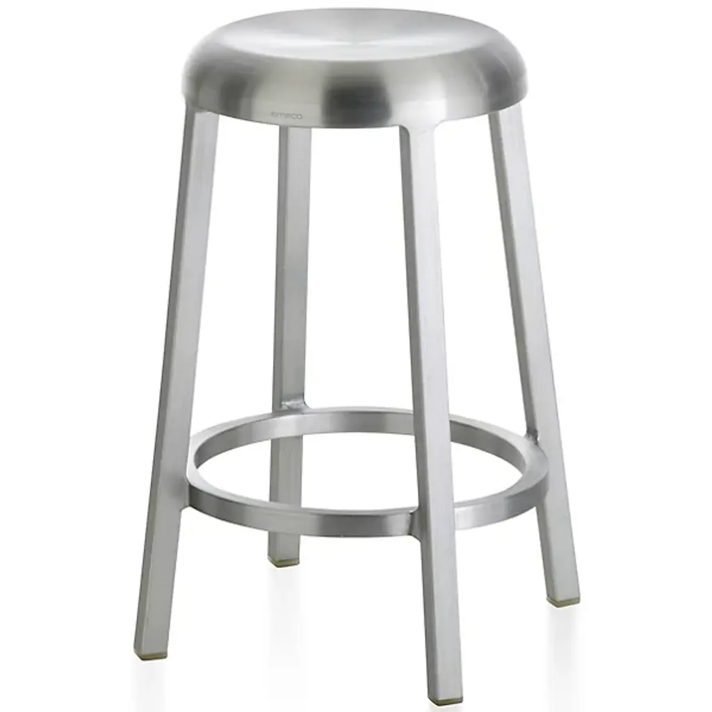 The Za Bar Stool by Emeco is a design from Naoto Fukasaws intended to be kept, cherished, and passed on for generations. Its name means “a place to sit” in Japanese, and this handcrafted, recycled aluminum stool does just that with its softly rounded seat and simple legs. Using recycled aluminum saves 95% of the energy that would be required to make this material new, making this design a smart environmental choice. Easy to clean and care for, the non-bacterial properties of this piece make it ideal for busy environments and can be used indoors or out.