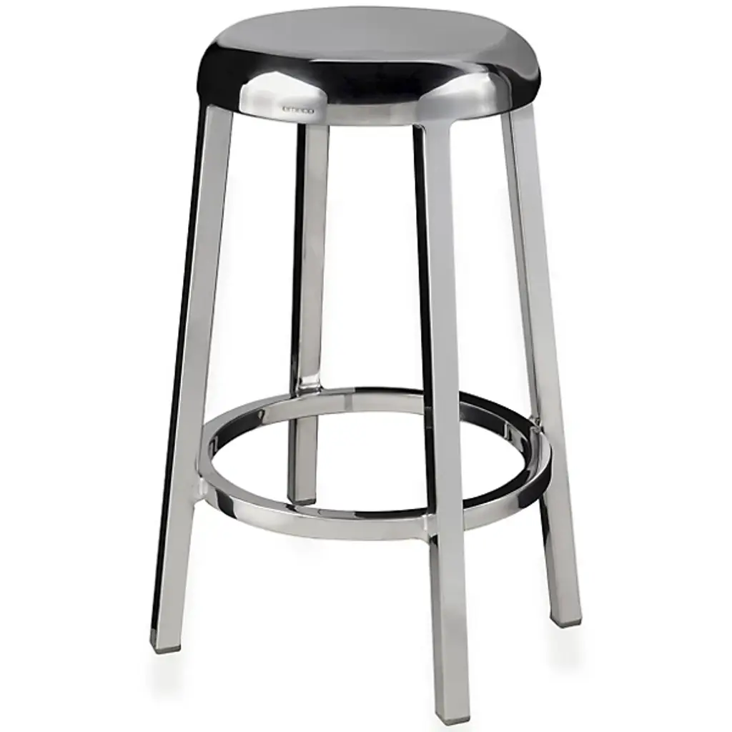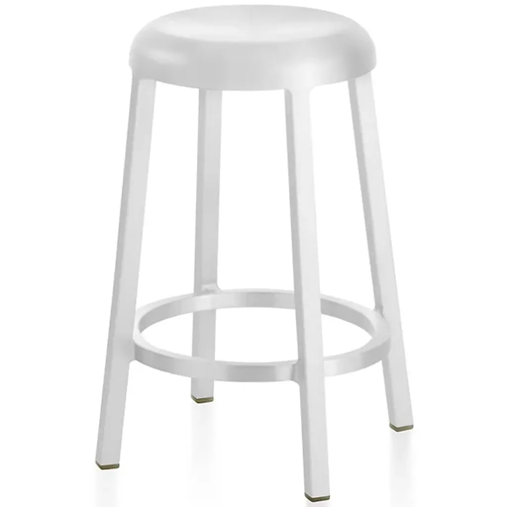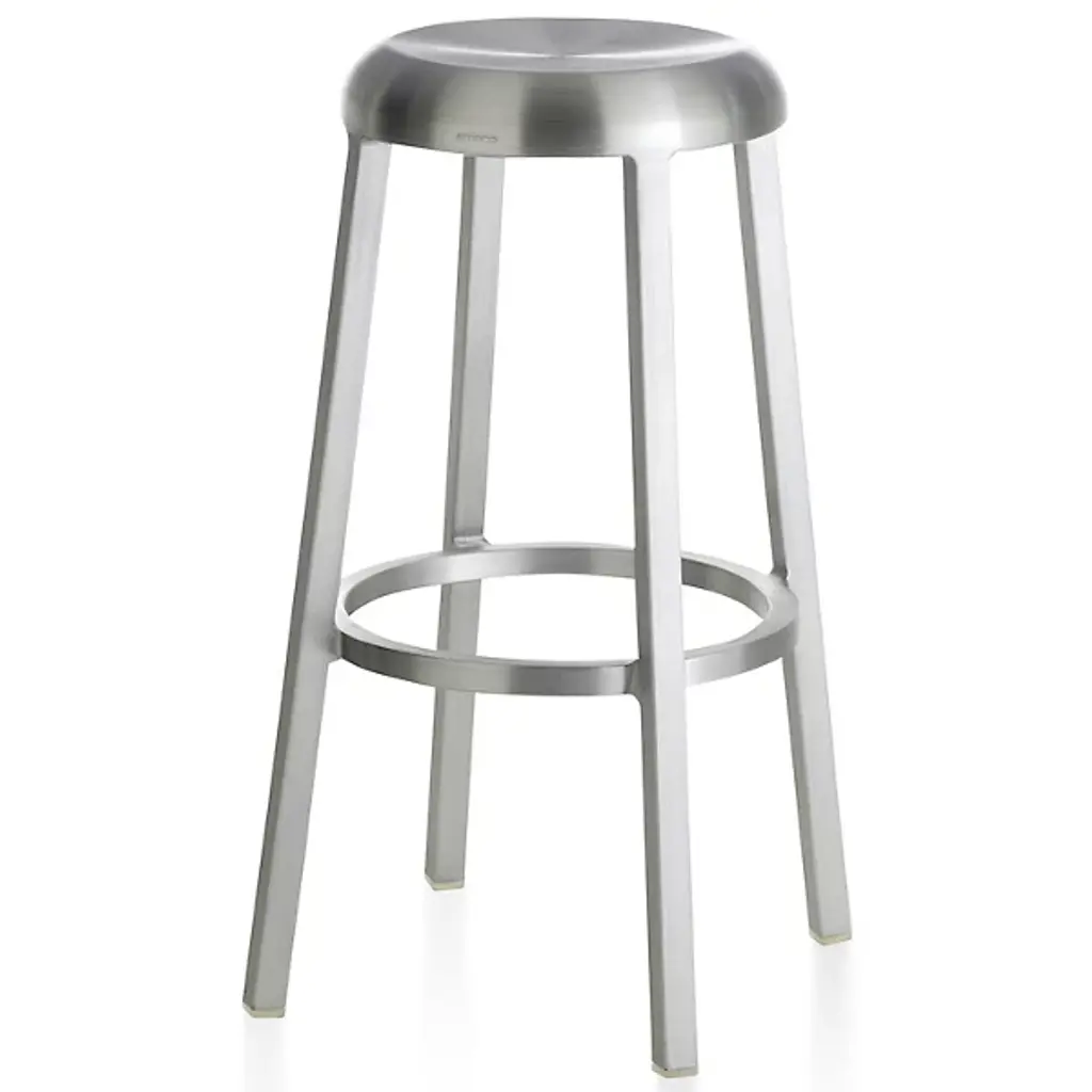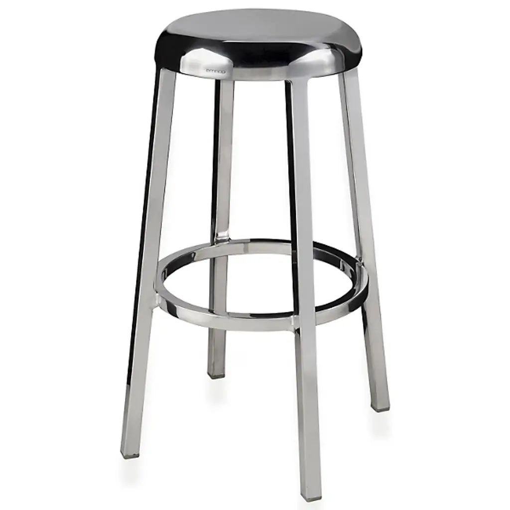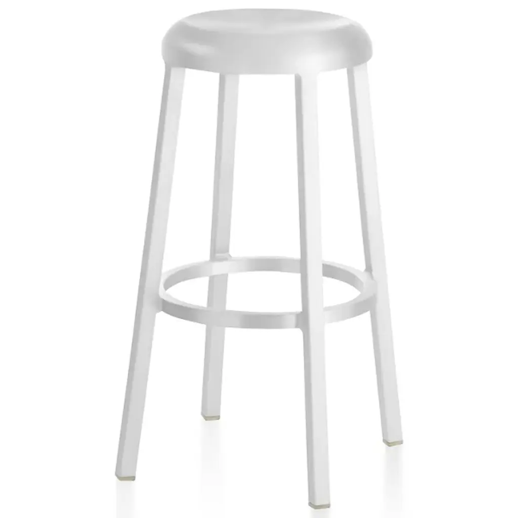 The Za Bar Stool by Emeco is a design from Naoto Fukasaws intended to be kept, cherished, and passed on for generations. Its name means “a place to sit” in Japanese, and this handcrafted, recycled aluminum stool does just that with its softly rounded seat and simple legs. Using recycled aluminum saves 95% of the energy that would be required to make this material new, making this design a smart environmental choice. Easy to clean and care for, the non-bacterial properties of this piece make it ideal for busy environments and can be used indoors or out.