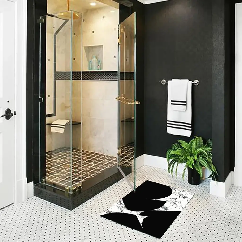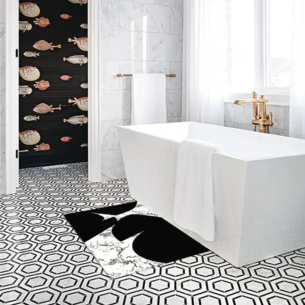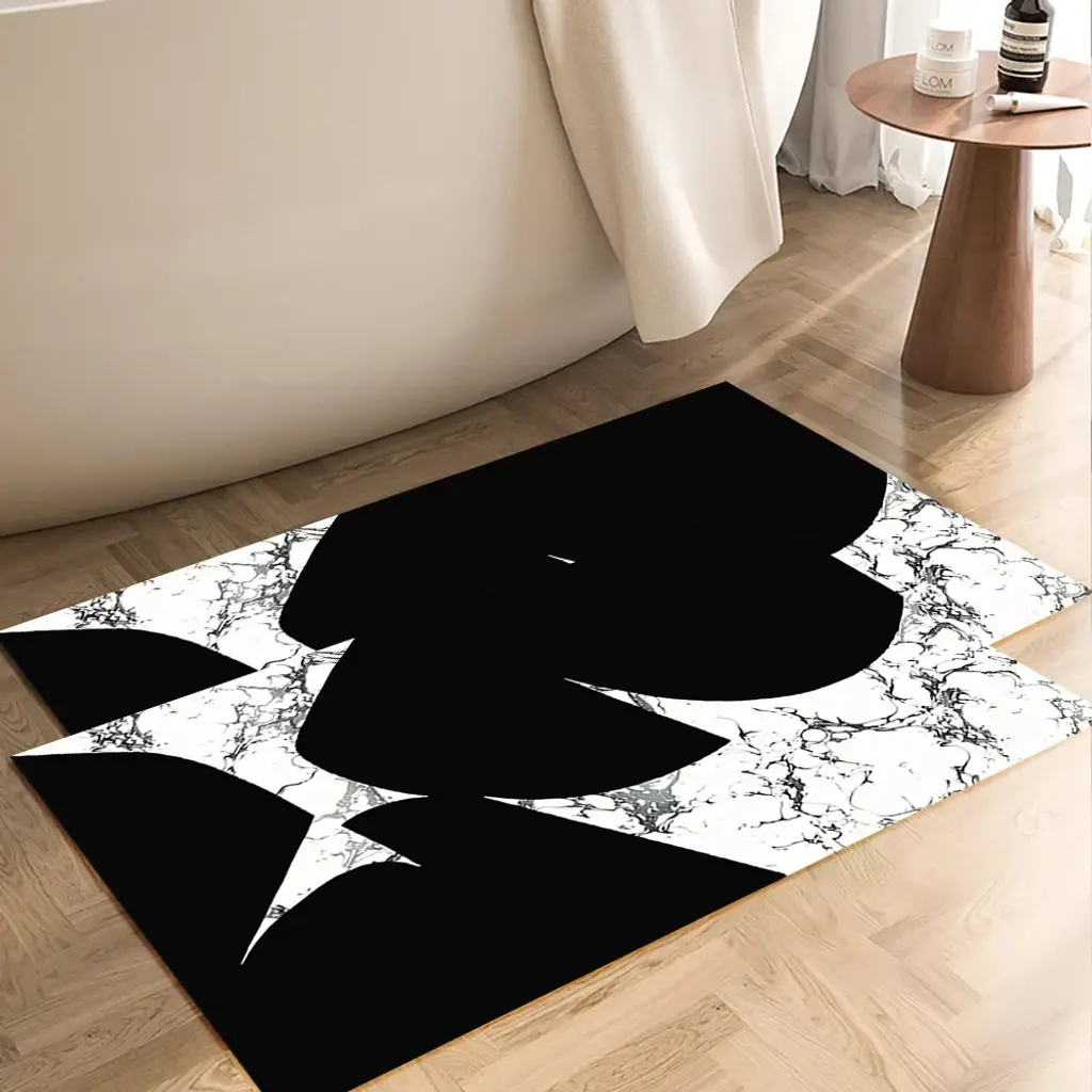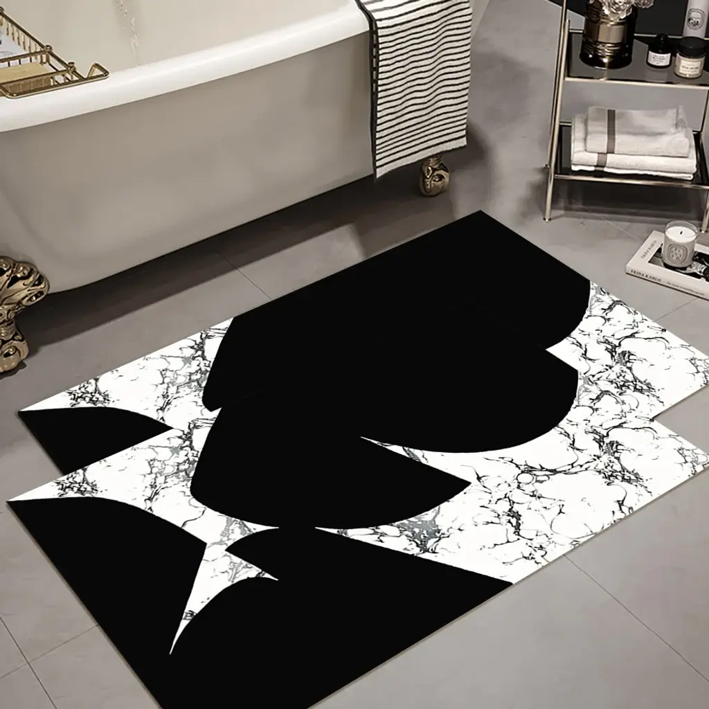 2 Pieces Black&white Geometric Bath Mat Set Marble Texture Non-Slip Absorbent Rug Sets