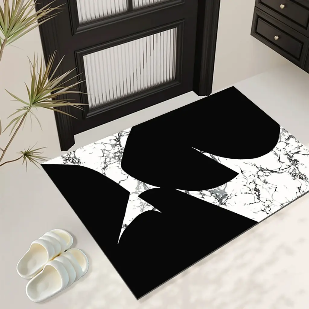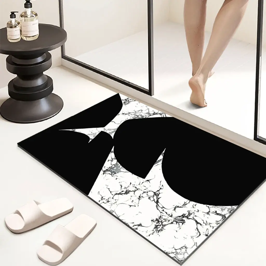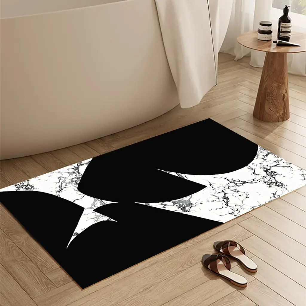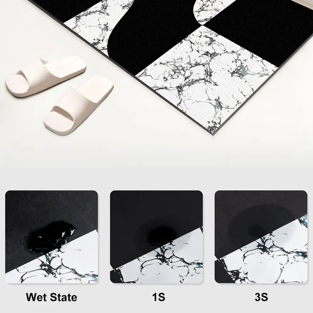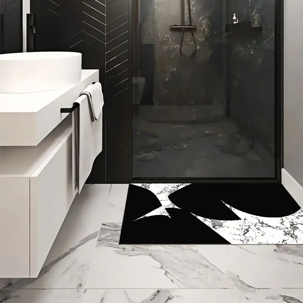 2 Pieces Black&white Geometric Bath Mat Set Marble Texture Non-Slip Absorbent Rug Sets