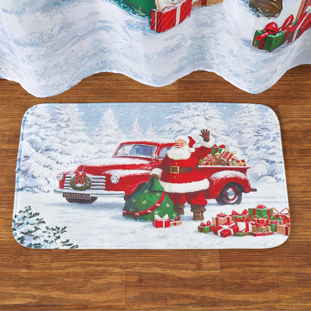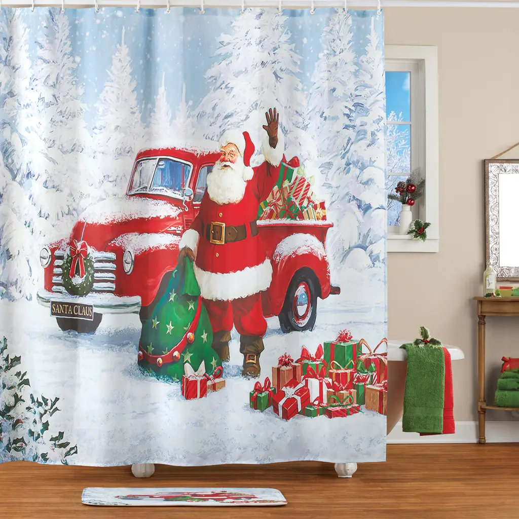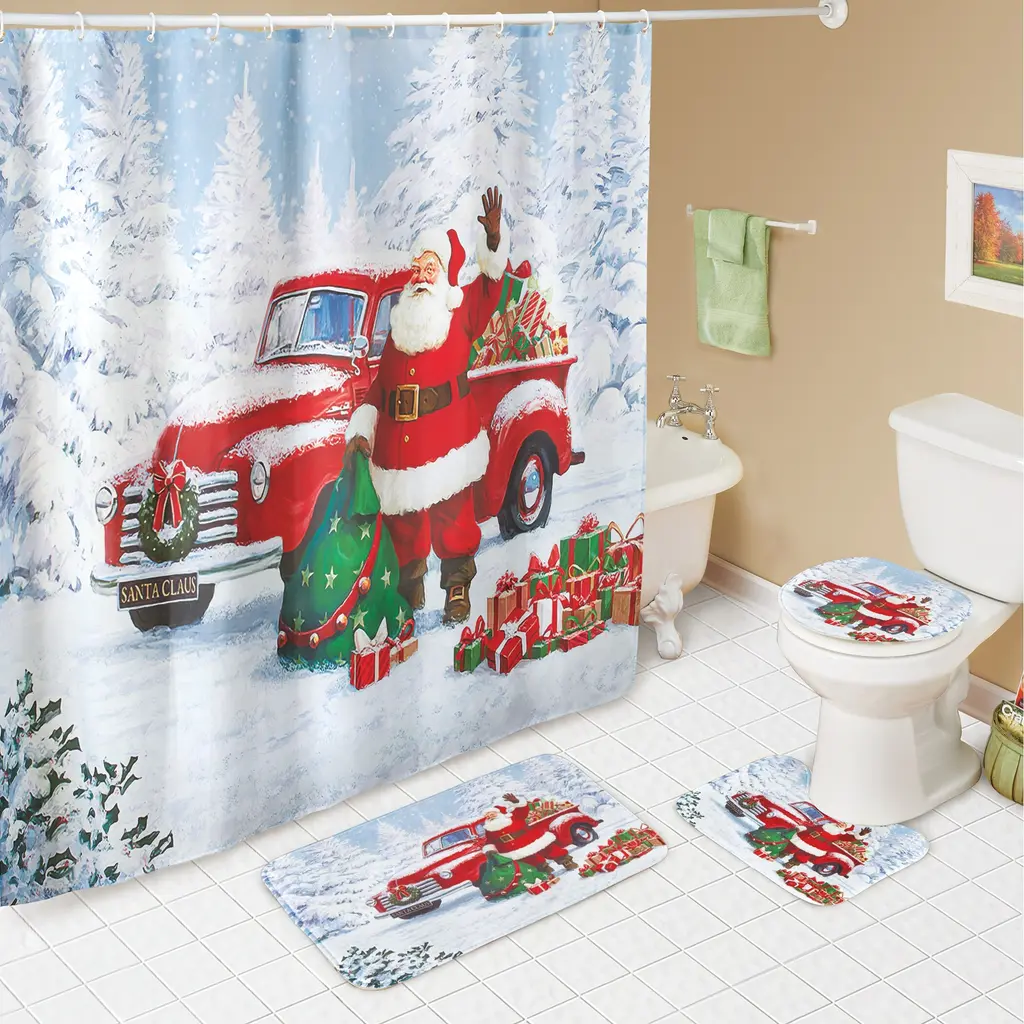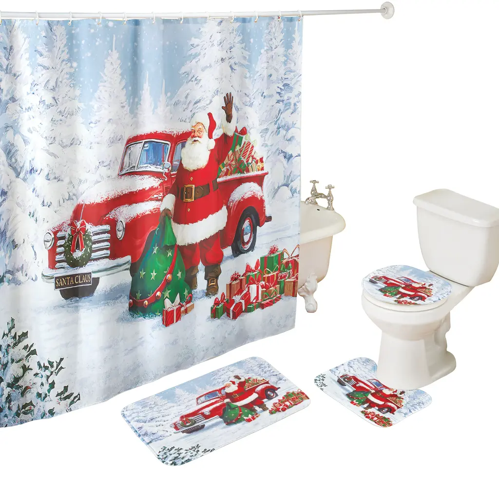 4-Piece Santa With Red Truck Coordinating Christmas Bathroom Set - 70 X 70 - White