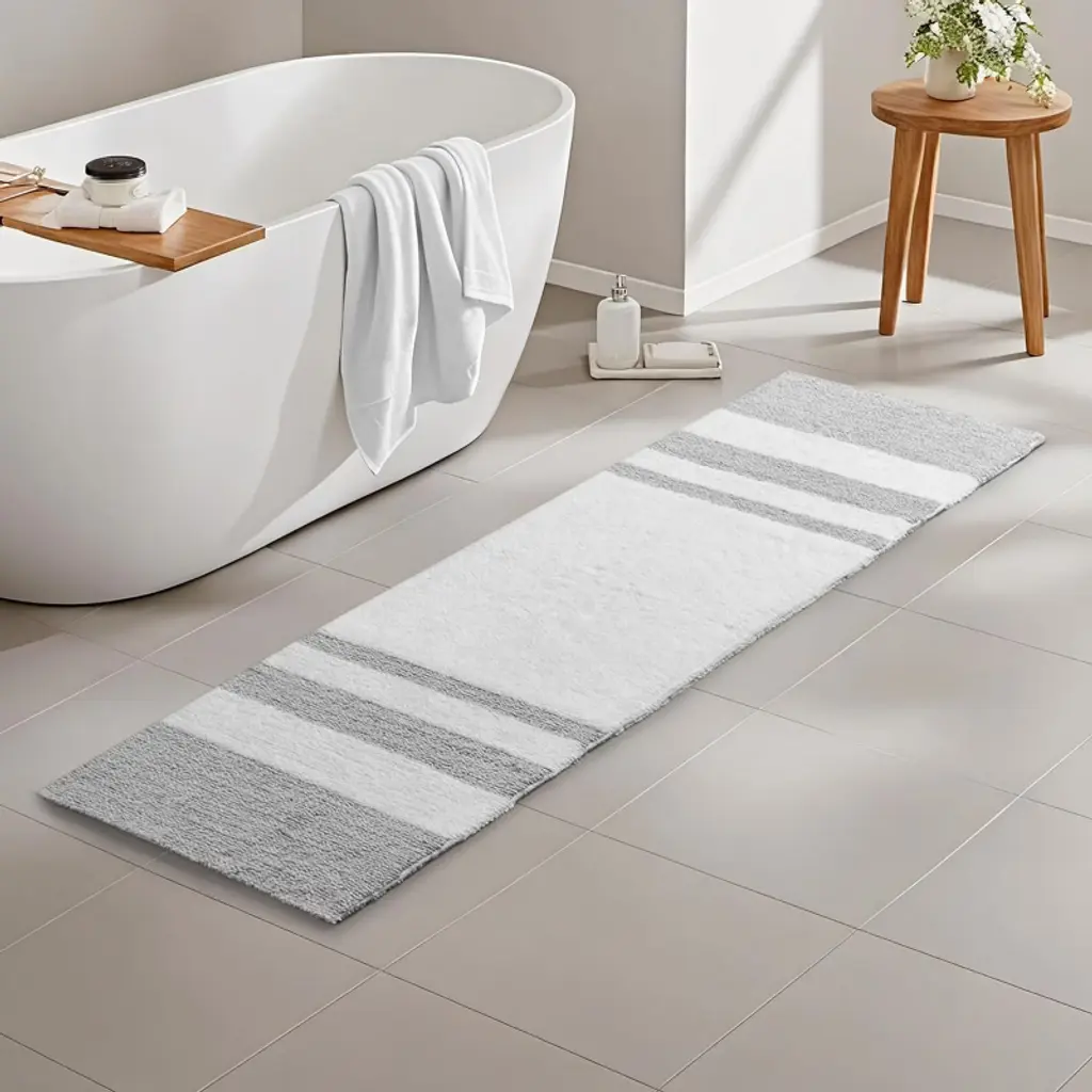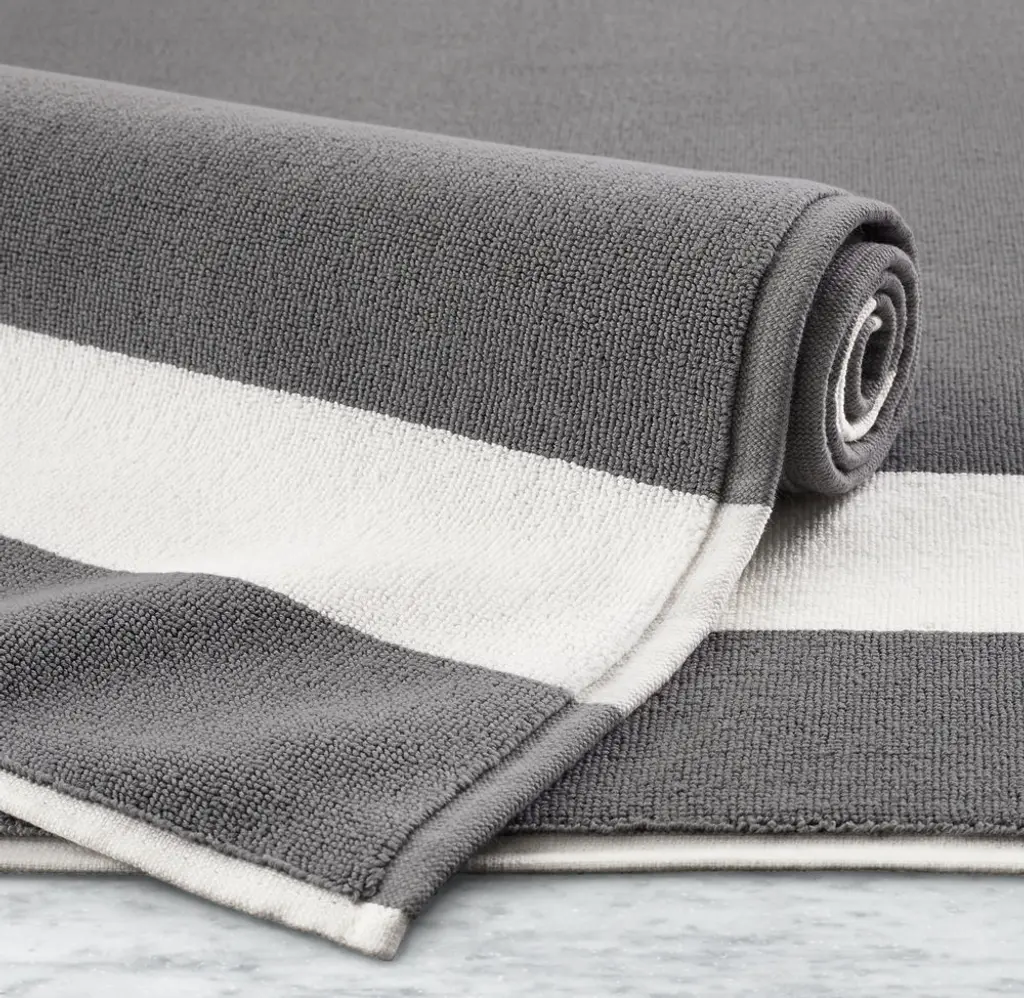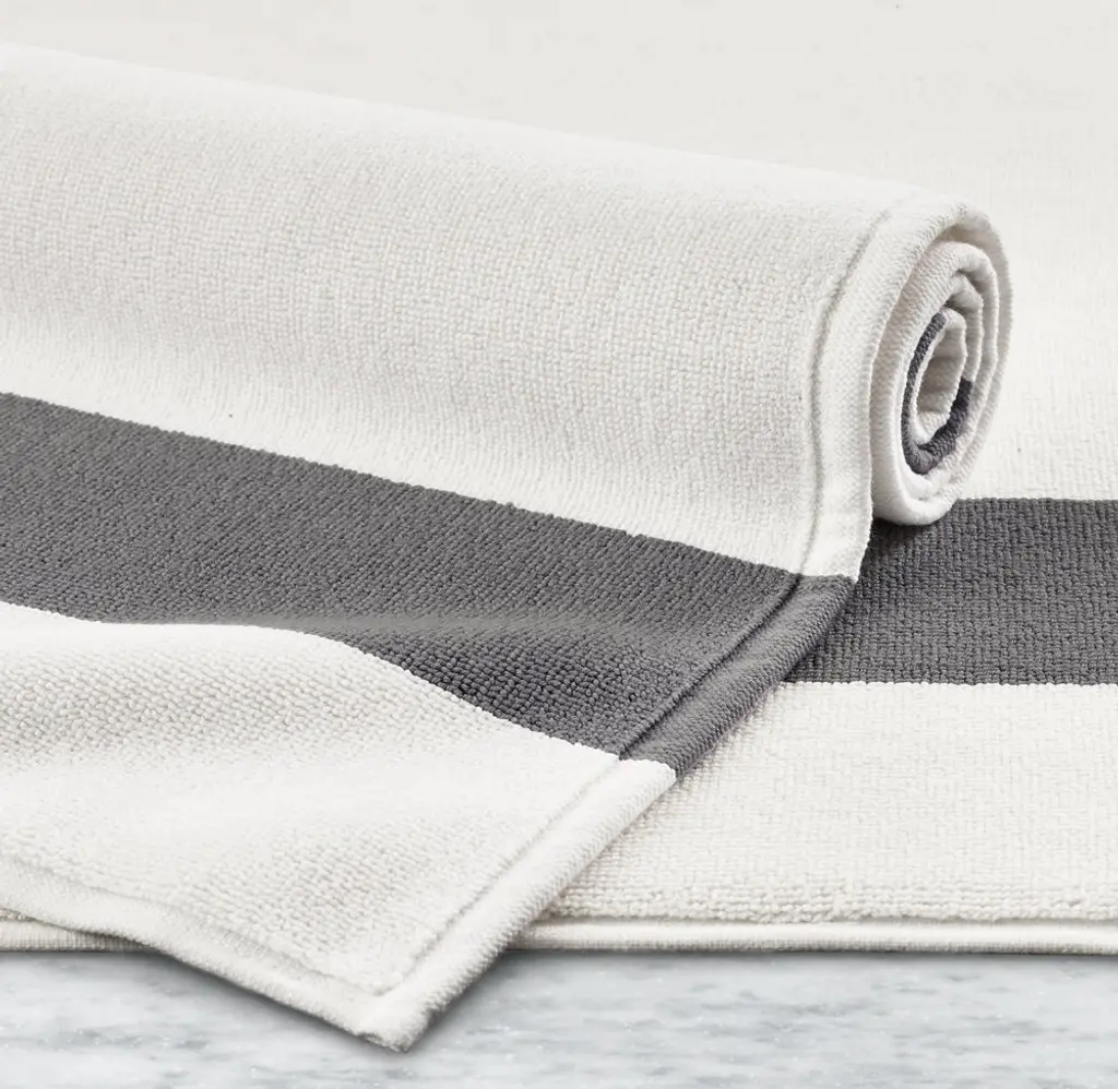 FREE SHIPPING A wide band lends a bold, modern edge to our signature 802-gram bath mat. Loomed from premium long-staple Turkish cotton to a luxurious weight, the plush, silky loops offer exceptional softness and absorbency.