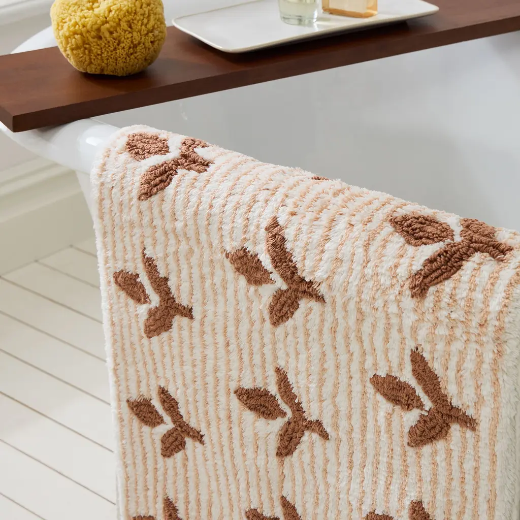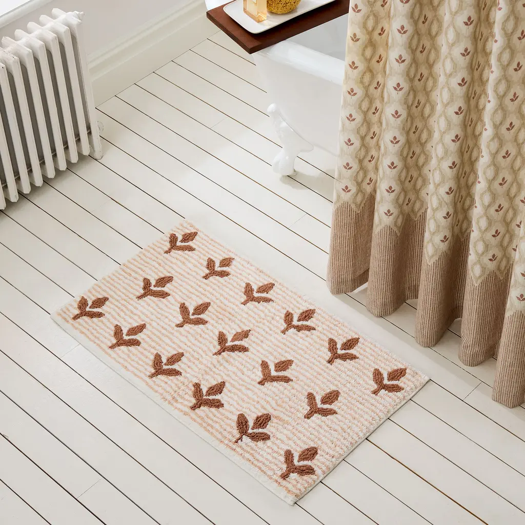 Its stylish, chic pattern. Helps keep the bathroom floor dry. 650 gram weight is extra absorbent and cushy underfoot.