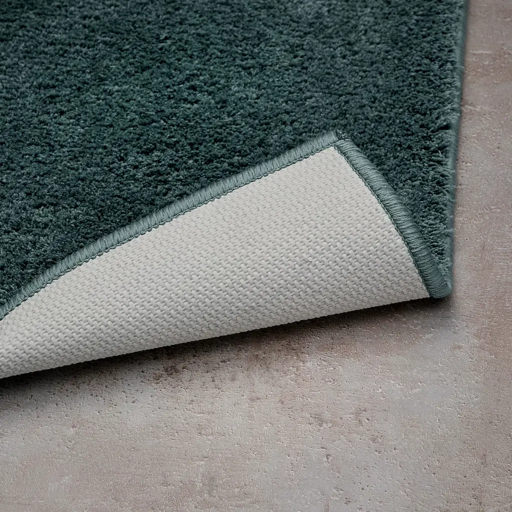 BACKMÅRA Bath mat - turquoise 20x31 ". BACKMÅRA bath mat is made of 100% polyester (90% recycled) and weighs 1560 g/m². Soft and absorbent with a fluffy pile that feels comfy under your feet. Latex backing helps keep the bath mat in place. Easy to keep clean and fresh since it is machine washable.