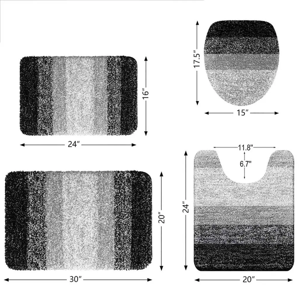 Bagokie 4Pc Microfiber Bathroom Rug Set, Black
