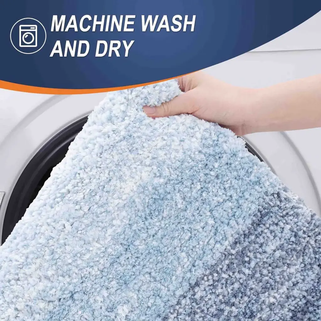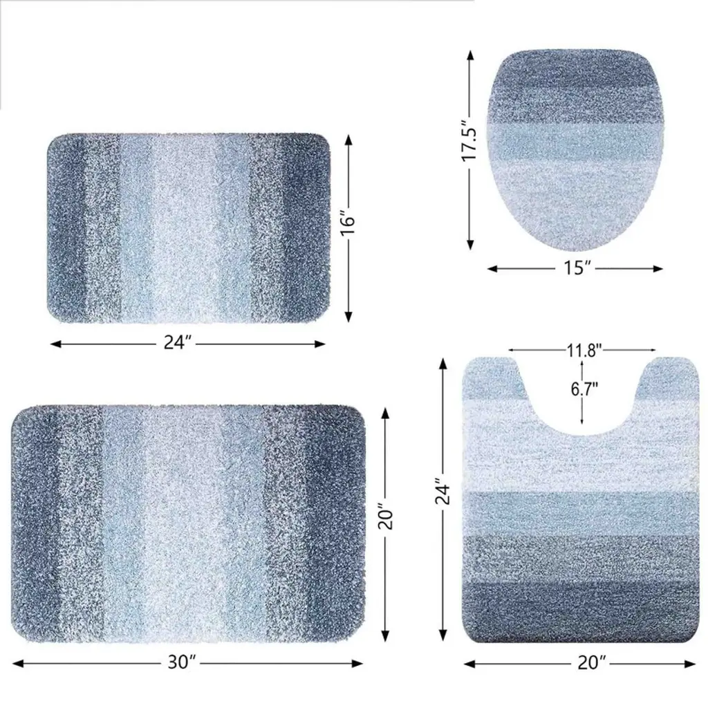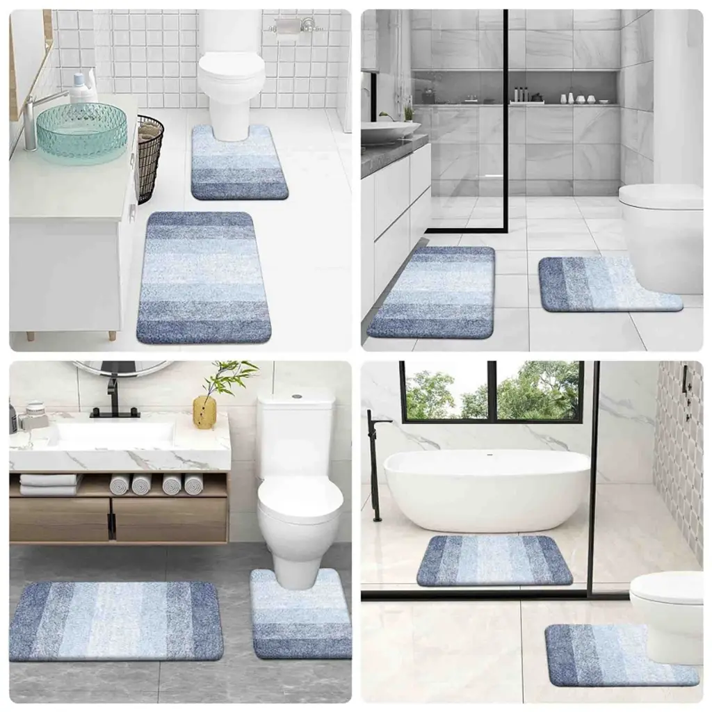 Bagokie 4Pc Microfiber Bathroom Rug Set, Blue