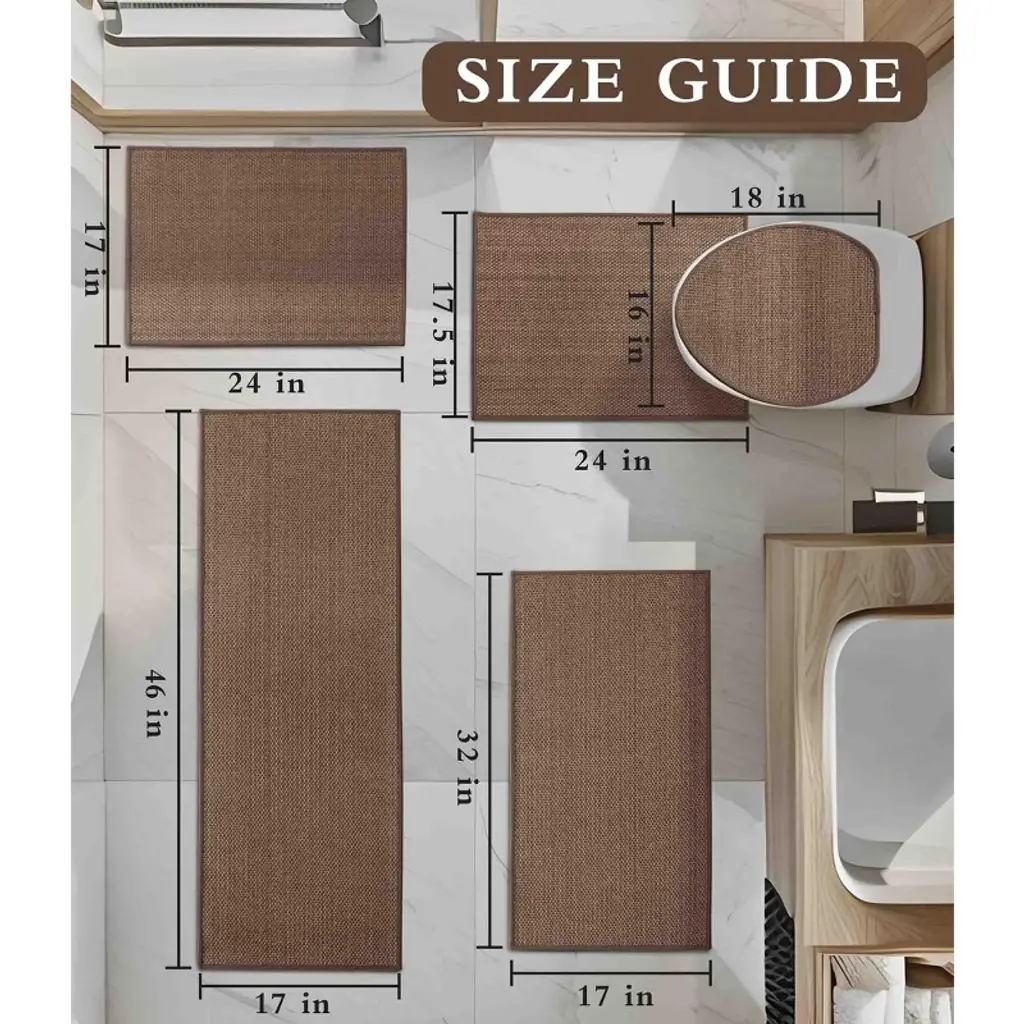 Bagokie 5 Piece Non-slip Bathroom Rug Set, Coffee
