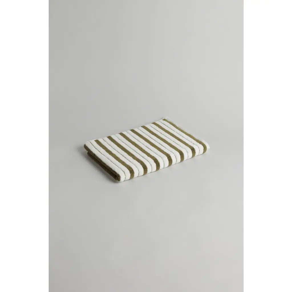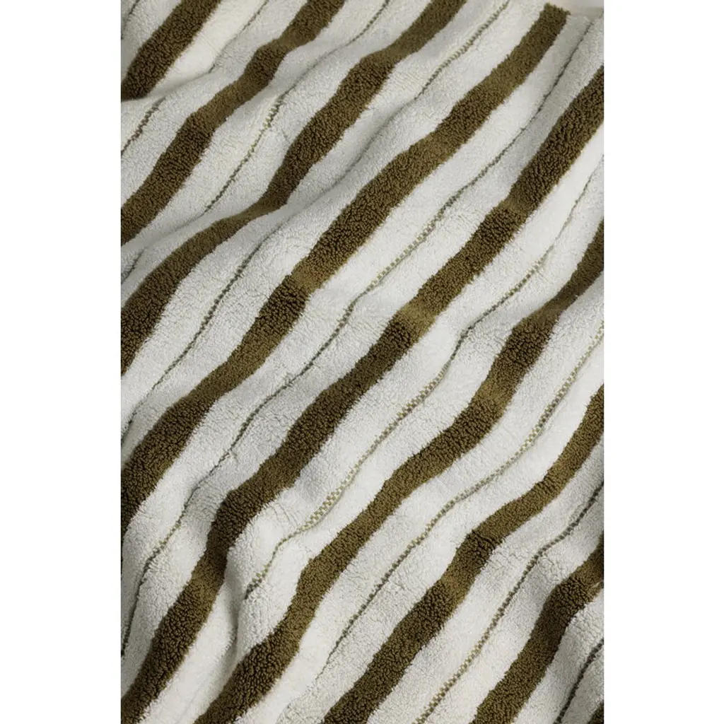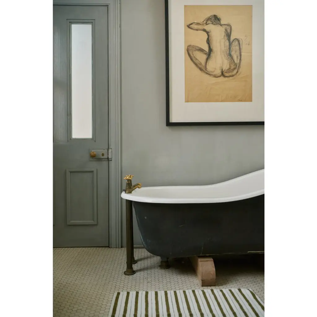 The Baina Echo bath mat features a fresh two-tone stripe pattern with alternating thick woven stripes and small checkerboard embroideries. The design is mirrored on the reverse side in opposite shades. Made from densely woven, highly absorbent organic cotton terry, this thick bath mat feels wonderfully soft under bare feet. Baina's bathroom textiles are designed to bring luxury to everyday life, transforming daily bathing into a calm and enjoyable ritual. Their patterns draw inspiration from many directions, such as fine arts, architecture and color theory. Baina textiles are crafted from organic cotton at a weaving mill in Portugal.