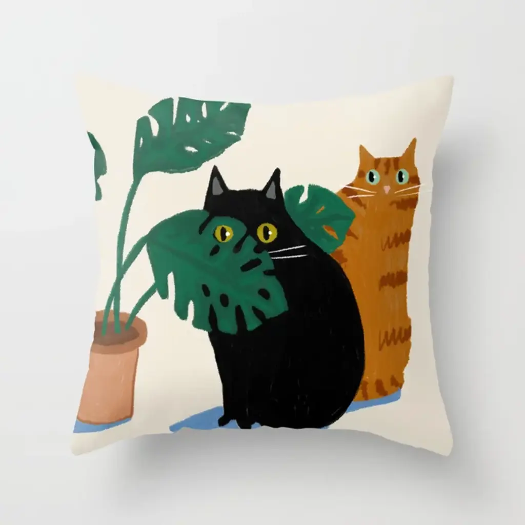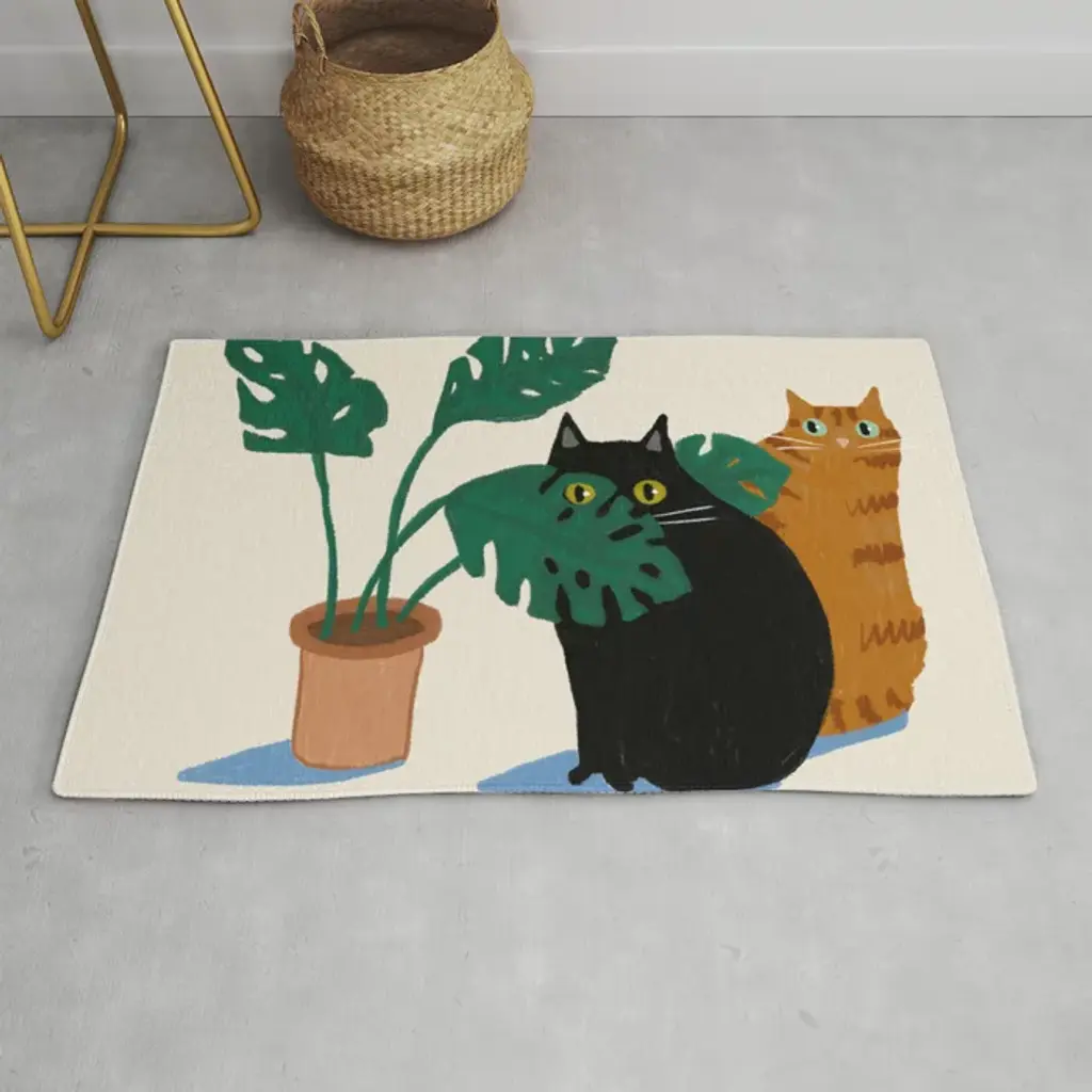 Black Cat & Orange Tabby Cat With Monstera Plant Bath Mat