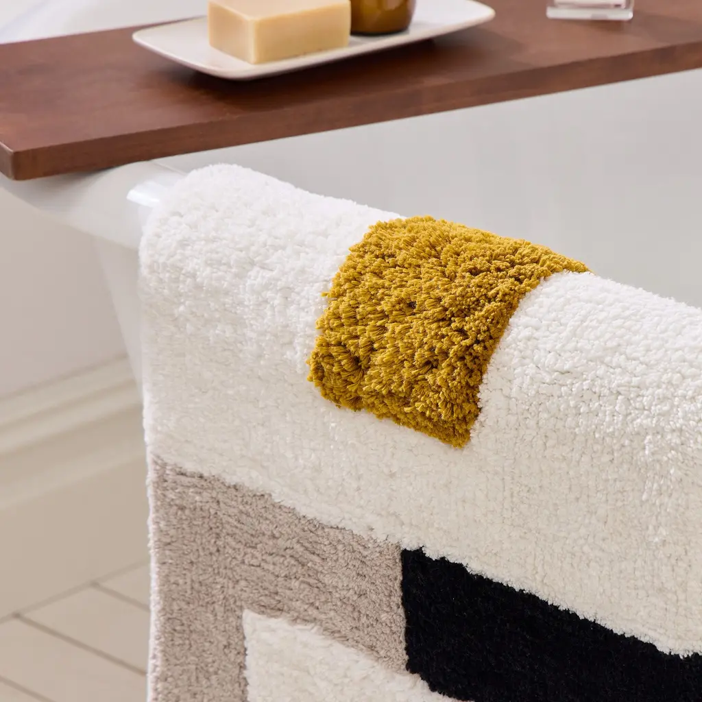 Take the colorblock trend for a test run with our Colorblock Bath Mat. Made from long-lasting cotton and featuring a geometric design, it’s both supersoft underfoot and striking to look at.