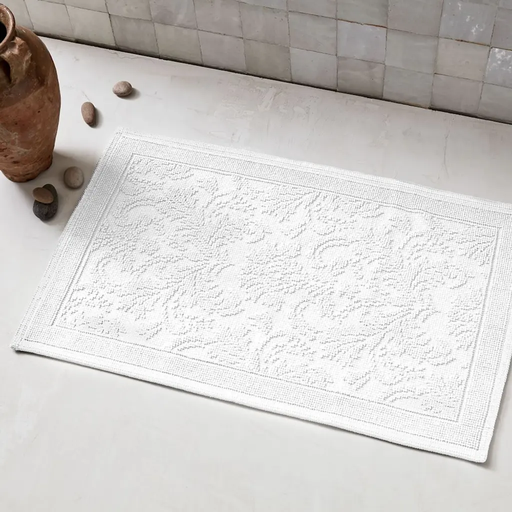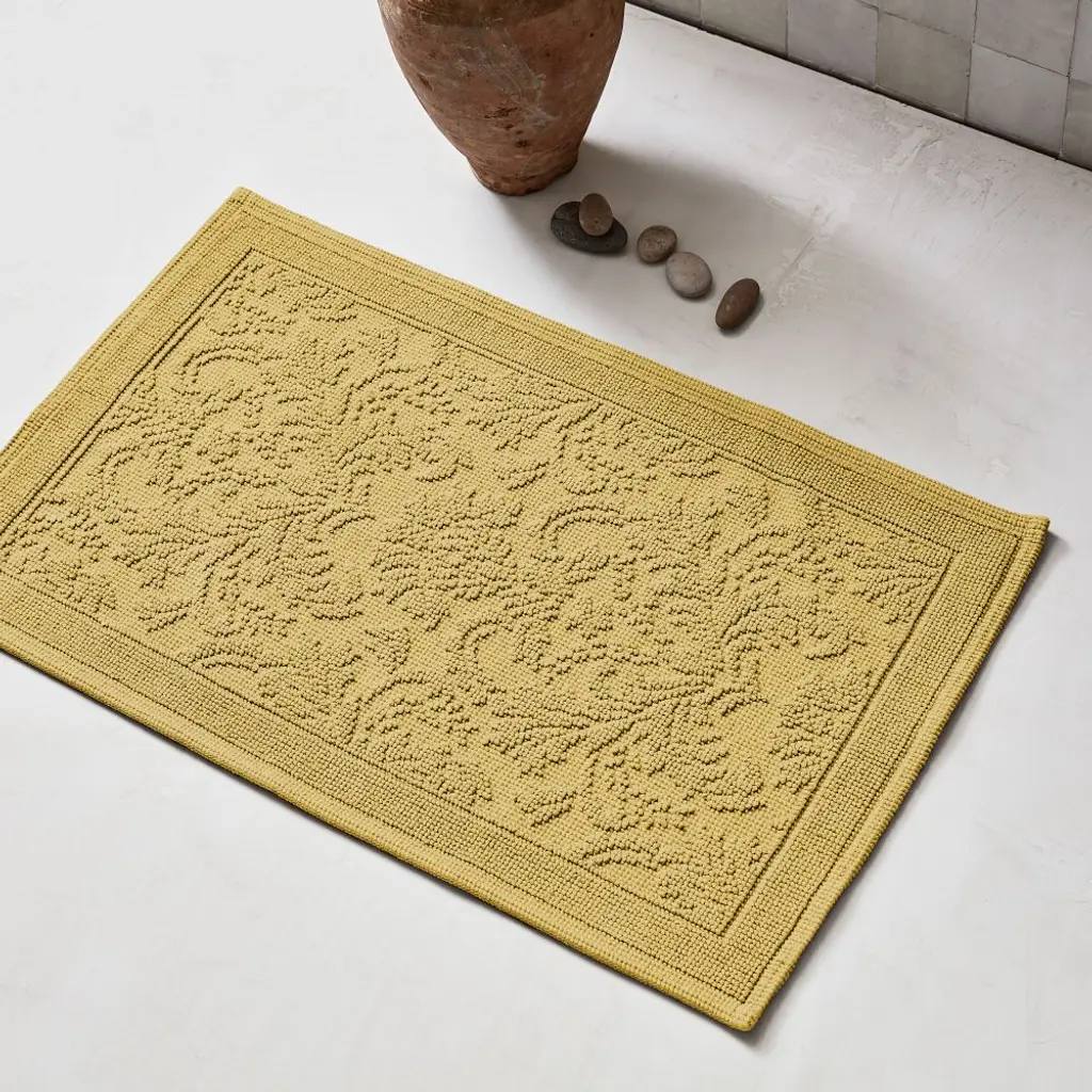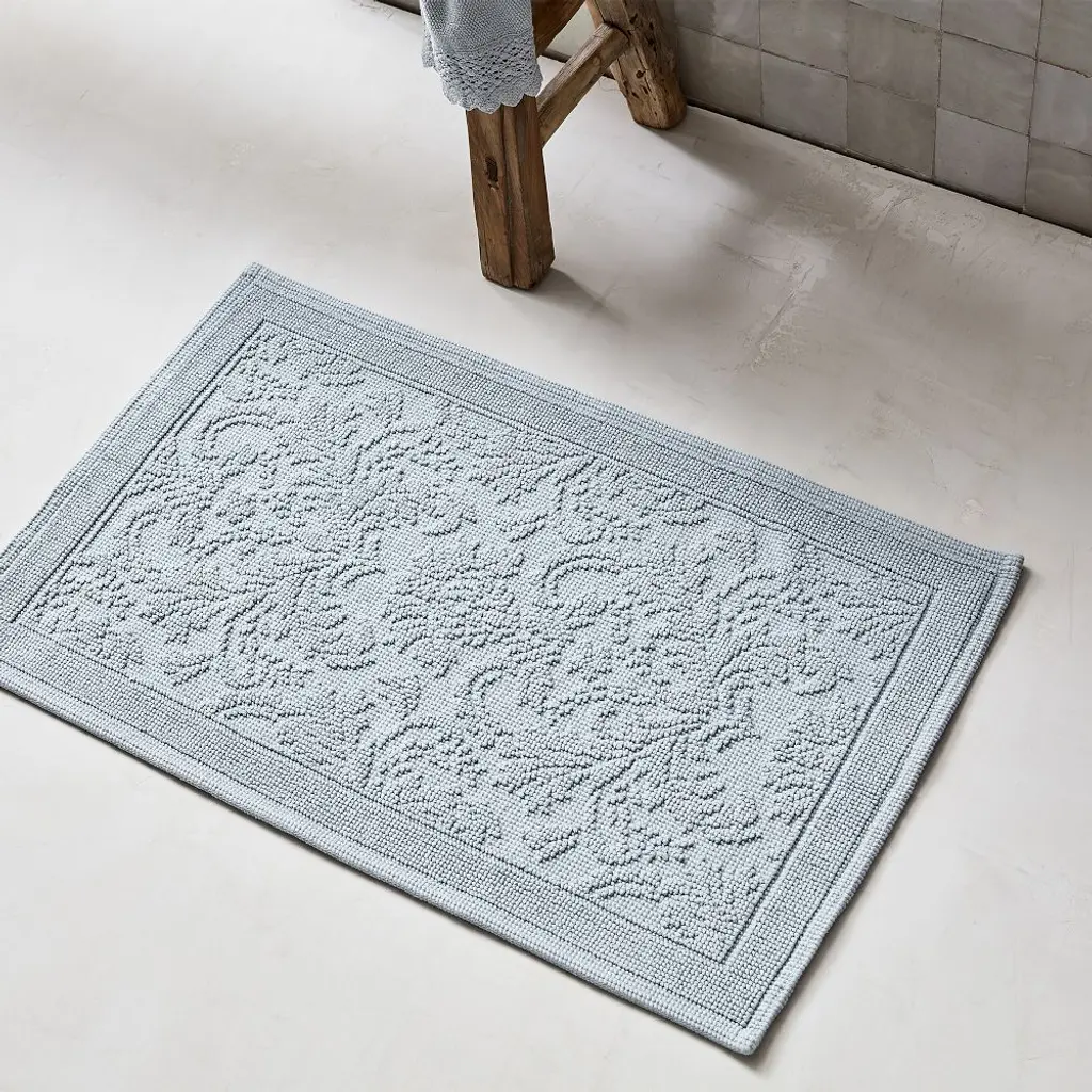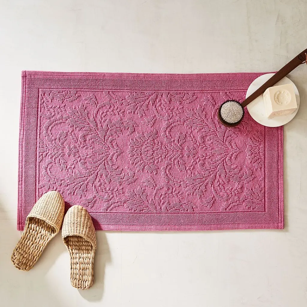 Little luxuries make all the difference. Woven with quiet details, like a tufted border and floral pattern, this OEKO TEX® certfied bath mat adds a layer of soft, calm color wherever it lays.