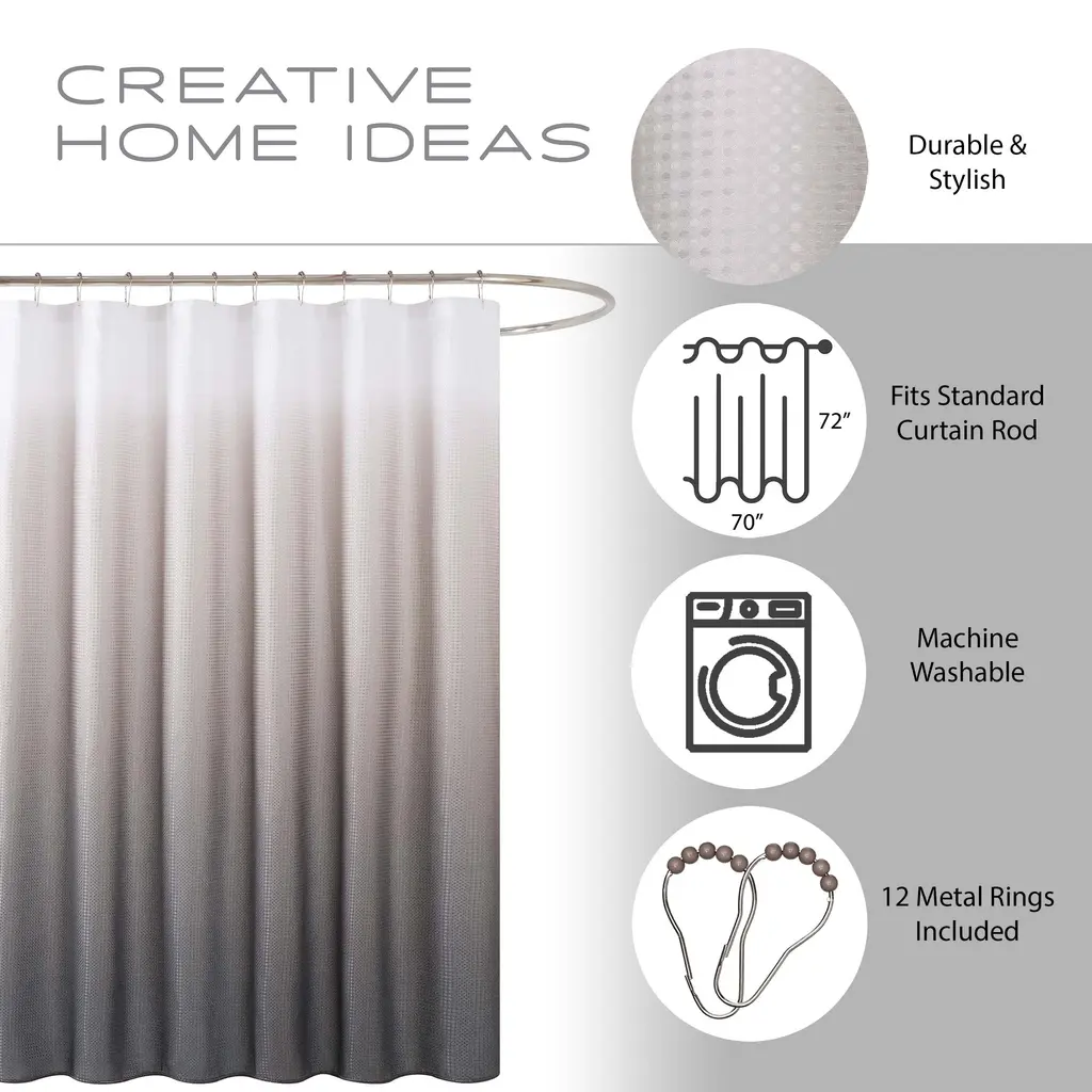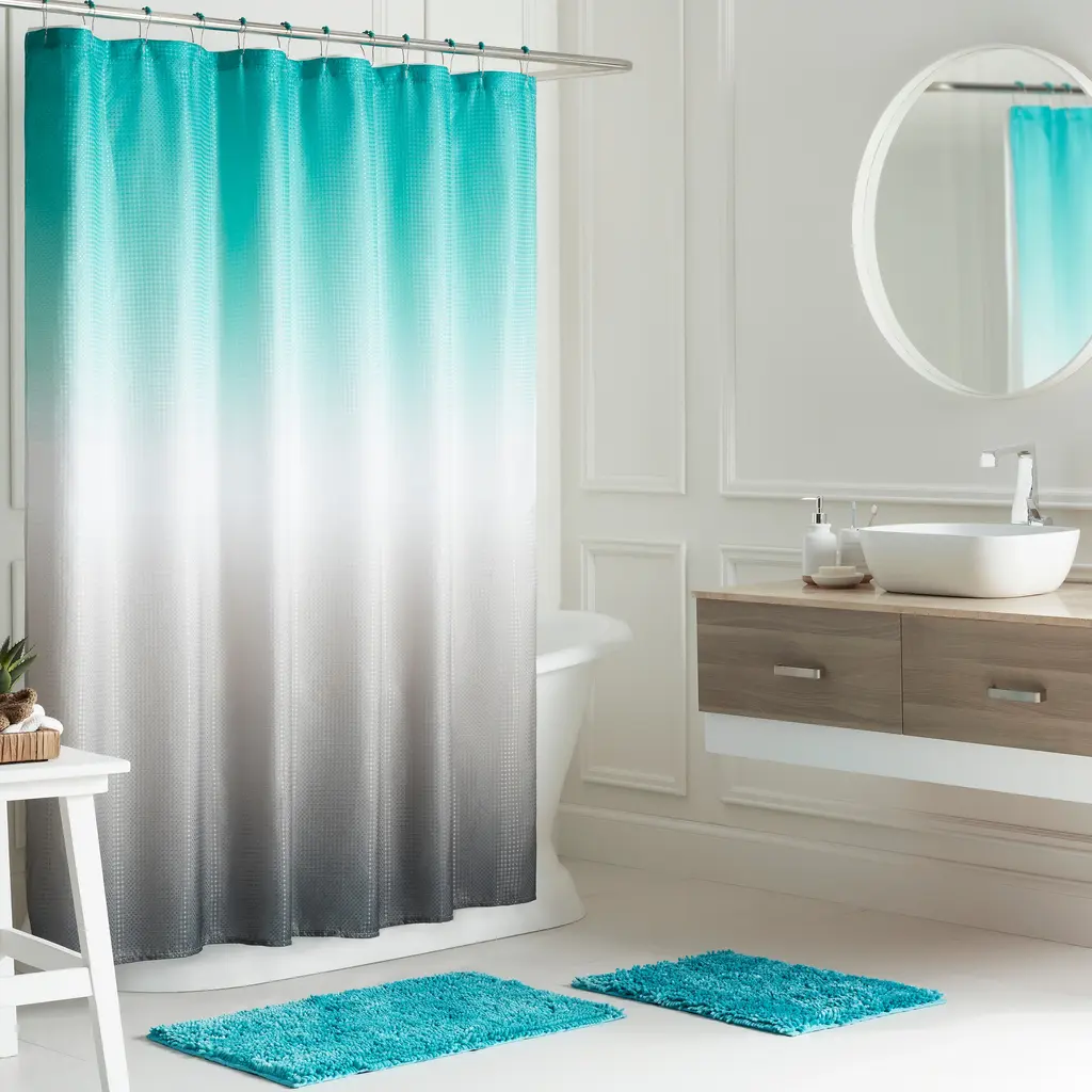 Revamp your bathroom style with the super stylish and convenient 16 piece Ombre bath set from Creative Home Ideas. Whether you'd like a neutral look or pop of color, choose from an array of color options that fit your needs. All in one bathroom decor with soft chenille bath mats, ombre shower curtains, matching beaded hooks, and liner included. Easy care means less time spent on cleaning. For shower curtains and bath mats, machine wash cold, gentle cycle with mild detergent. Wash separately. Shower curtains can be tumble dried low, and low ironed on reverse side. Bath mats should be hang dried and vacuumed regularly, shake afterward to restore fluff. Shower curtains may be only non-chlorine bleach when needed, do not bleach bath mats. Set includes (1) 70x72 inch shower curtain, (12) beaded hooks, (1) PEVA liner, (1) 17x24 and (1) 20x32 inch soft chenille bath mat. Imported.