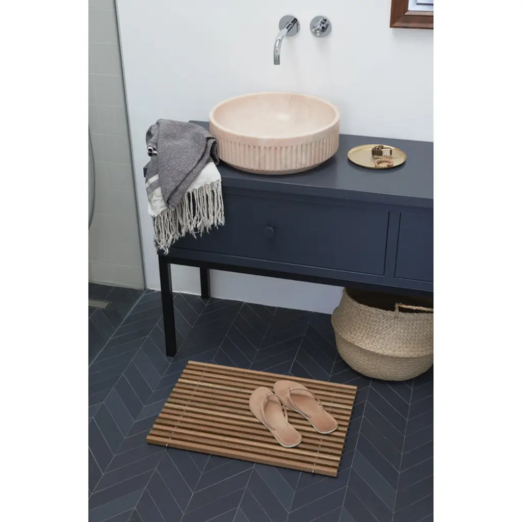 Skagerak’s Dania mat adds a warm and natural touch of teak wood to the bathroom, sauna or balcony. The wooden bath mat is comfortable to step on after the shower – your feet will stay warm, and the water will run on the floor through the wooden slats. Untreated wood is characterized by beautiful grain patterns, and its color will live and gradually change over time. Dania can also be used, for example, as a door mat.