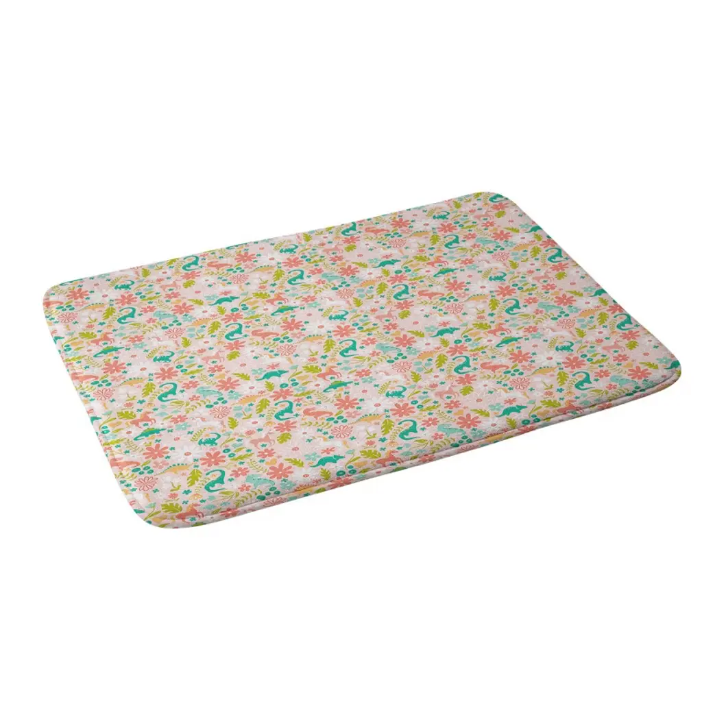 Deny Designs Lathe And Quill Dinosaurs Unicorns In Pink Teal Memory Foam Machine Washable Kids' Bath Mat