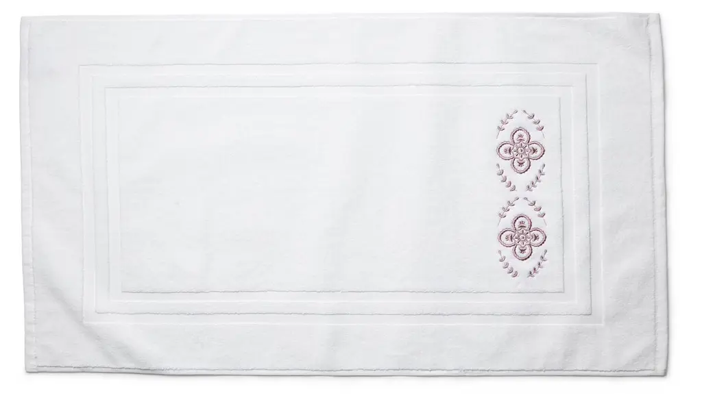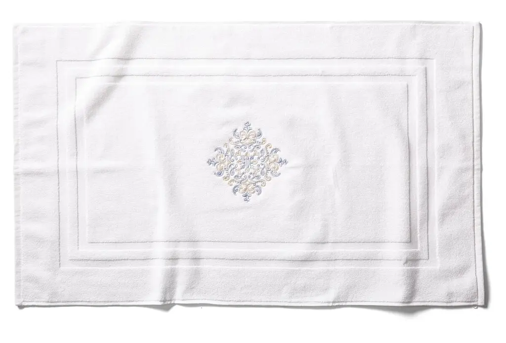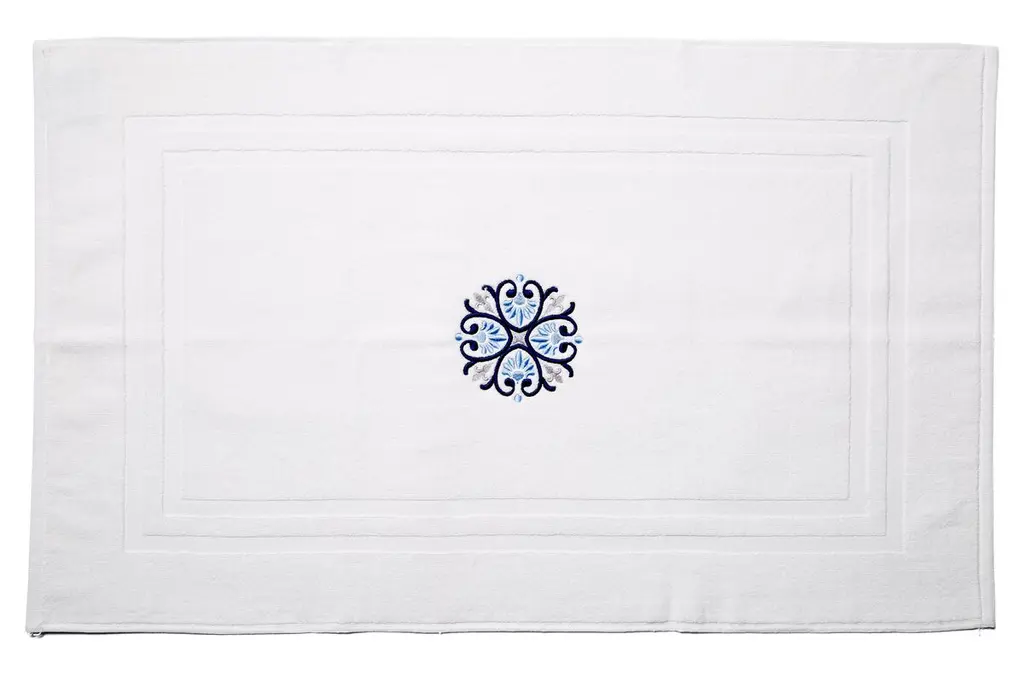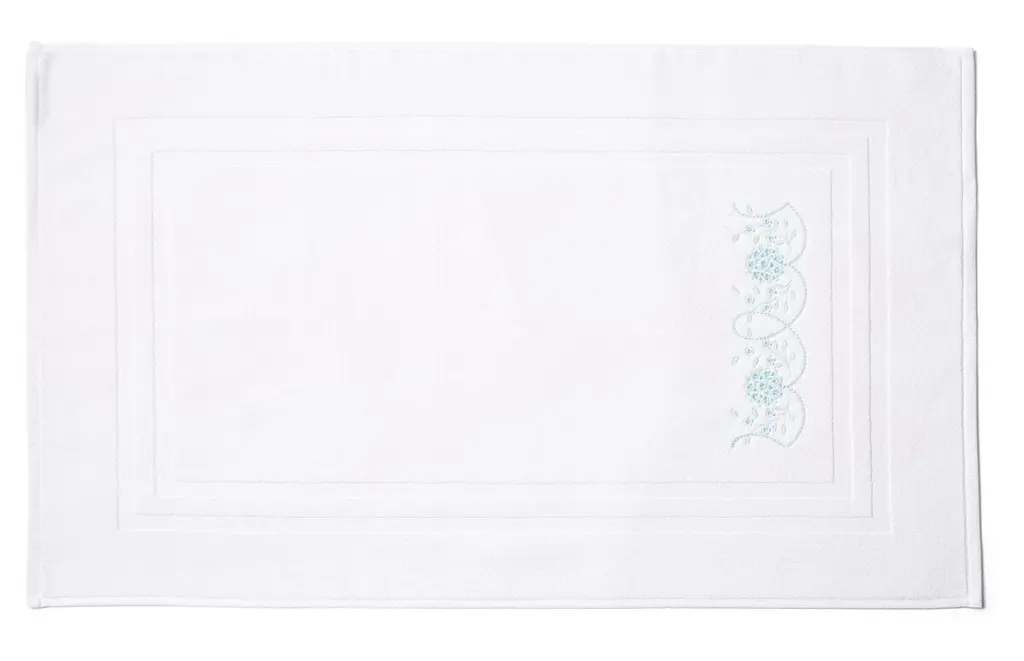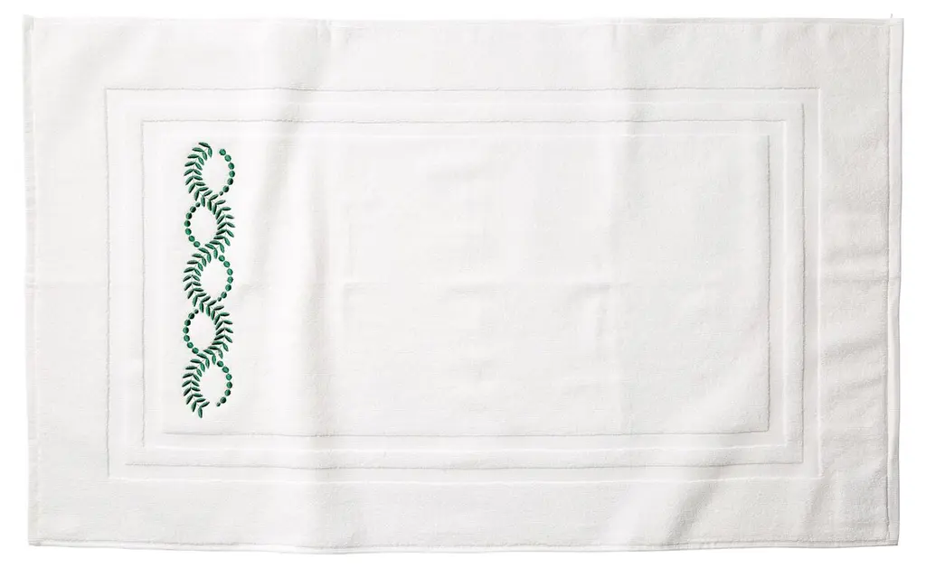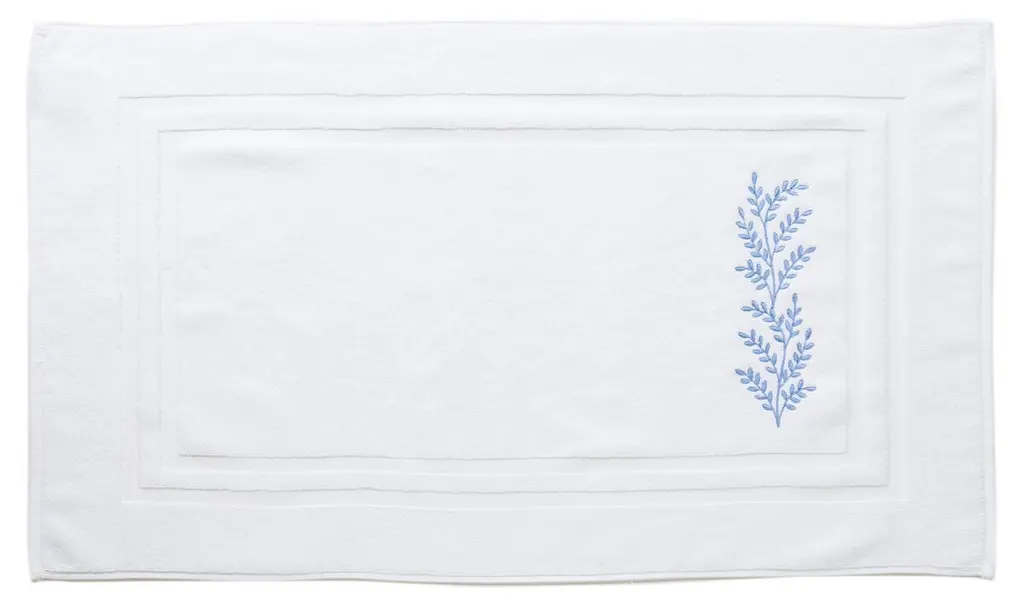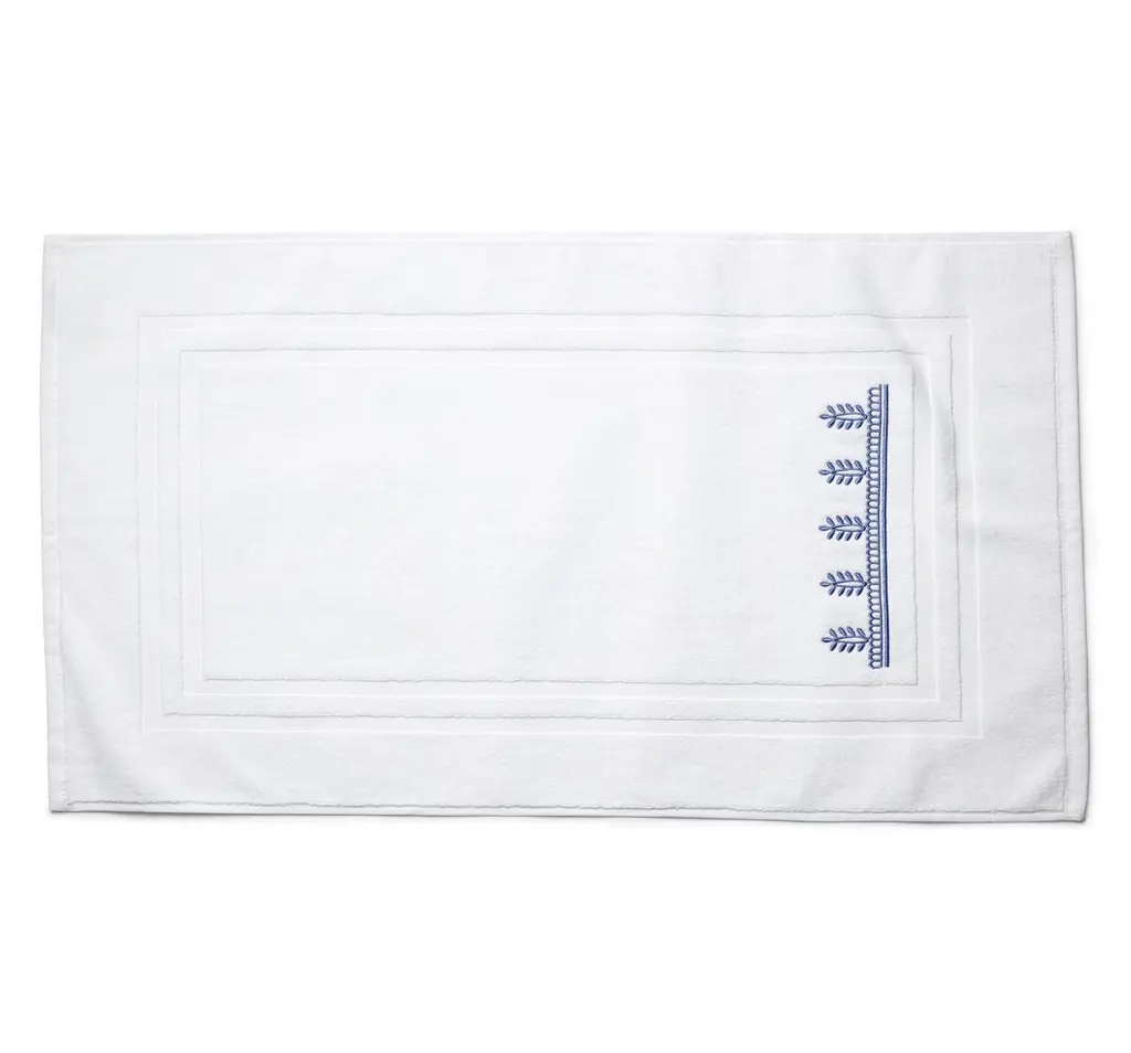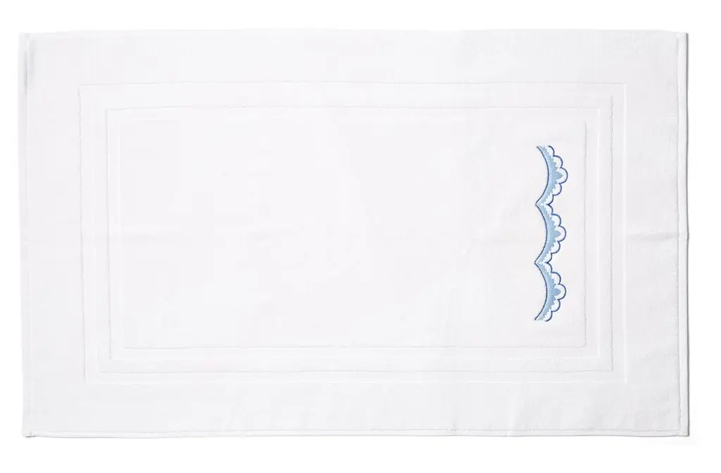 Step on to the inviting softness of a luxuriously large, combed cotton bath mat, crafted in an incredibly plush 700-grams-per-square-meter weight. Finished with a lovely, double scallop embroidery, the mat will give a luxurious look and feel to any bath decor. Made in Portugal and embroidered in the USA.