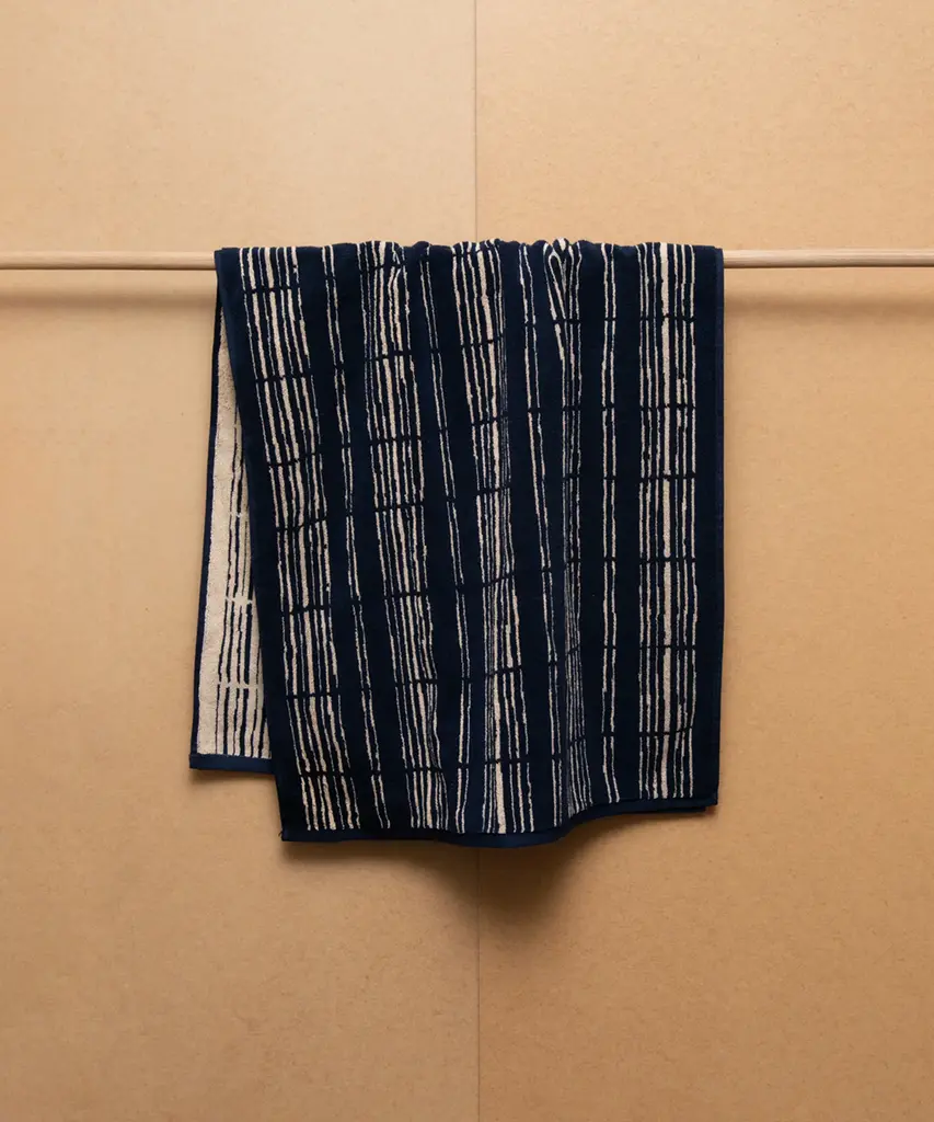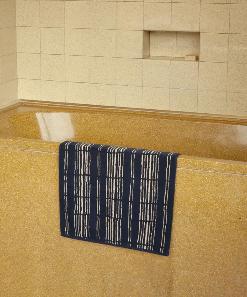 This serene design is inspired by traditional Katazome stencil practices. The unevenness of the stripes mimics the relaxed organic nature of bamboo mats. The generous double yarn is gratifyingly durable and maximizes on under the feet comfort. This bath mat absorbs and dries with ease thanks to the sumptuous surface area that forms an exceptionally even pile. Designed by the Amsterdam Based homeware brand, Autumn Sonata.