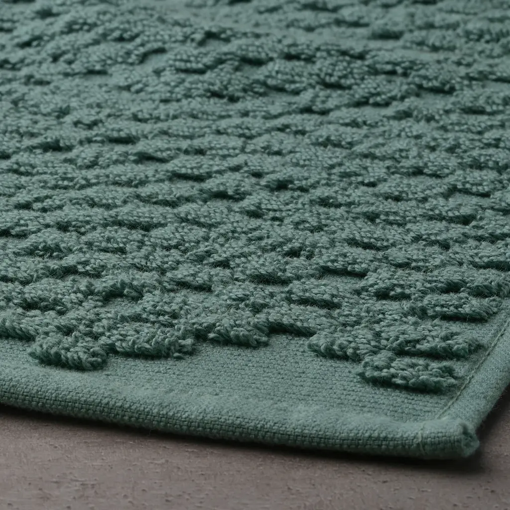 FJÄLLKATTFOT Bath mat - turquoise 20x31 ". Soft terry bath mat with high absorption capacity (weight 26.5 oz/yd²). The jacquard woven pattern adds texture that feels comfy to walk on. Enjoy a sense of wellness as your feet sink into the thick cotton pile.