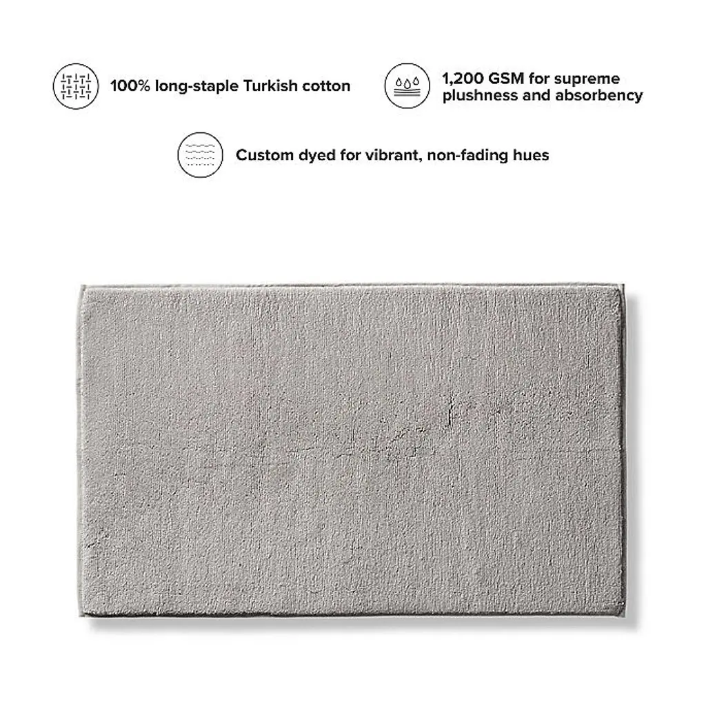 For our ultra-soft Resort Bath Mat, 100% long-staple Turkish cotton is woven to 1,200 GSM for supreme plushness and absorbency. The cotton acquires more lush texture with every machine washing. 100% long-staple Turkish cotton 1,200 GSM Custom dyed for vibrant, non-fading hues .39" thick Machine wash cold on gentle cycle; tumble dry low Matches our Resort Towels Made in Turkey A Frontgate exclusive. At Frontgate, our primary focus is quality. We guarantee that every product we sell will stand up to the supreme test – our customers' satisfaction. To learn more about our policies, visit our Shipping & Processing, Returns & Exchanges and Warranty & Price Guarantee pages.