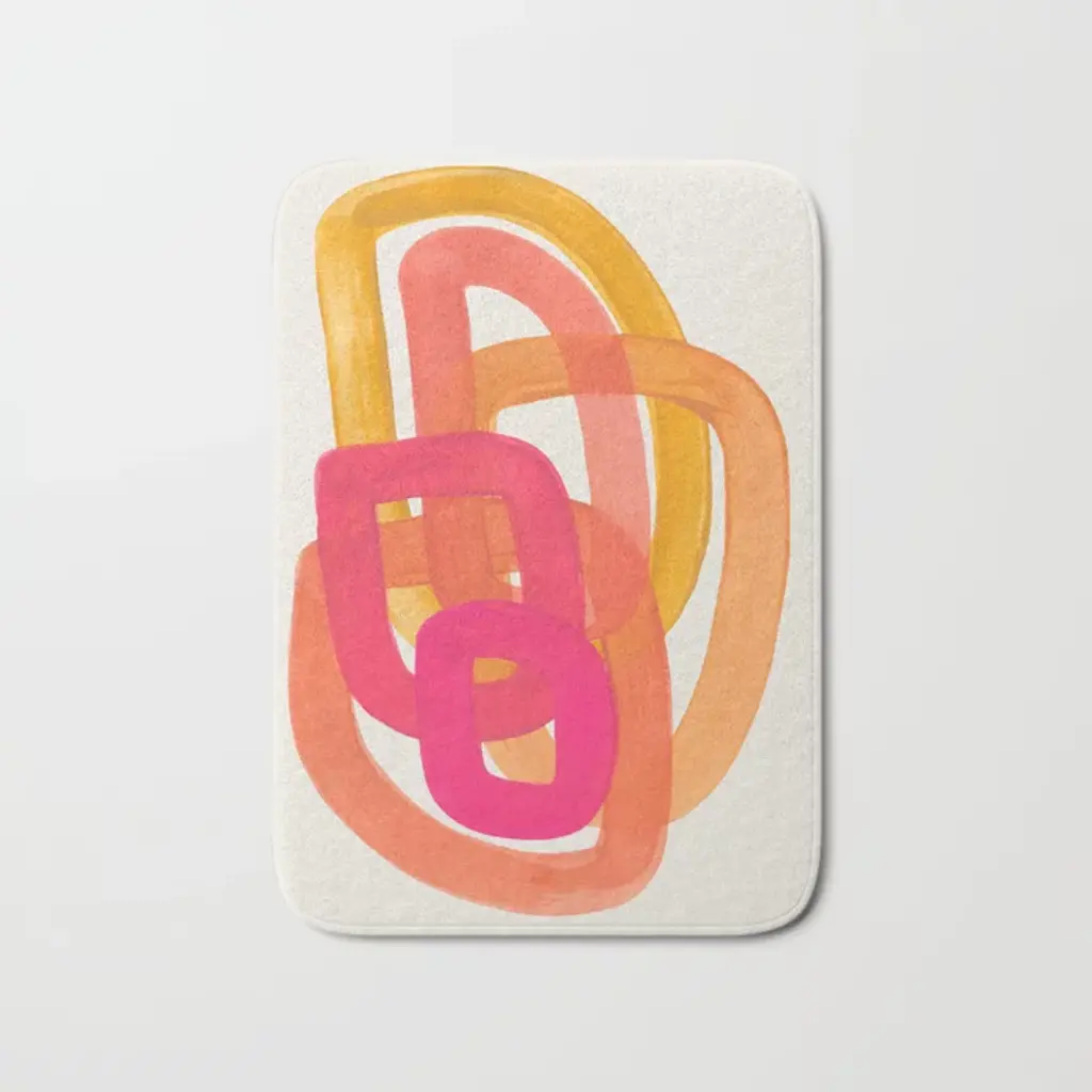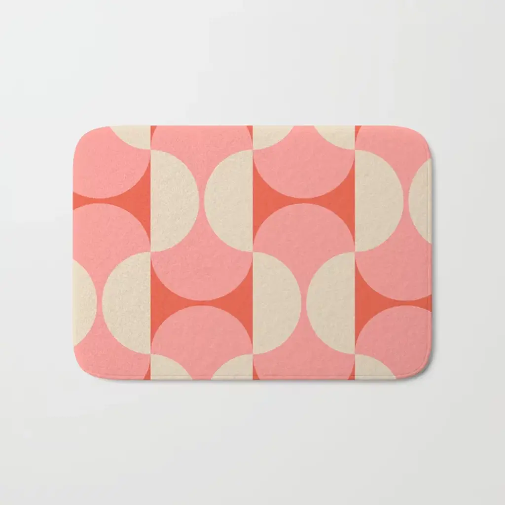 Funky Retro 70's Style Pattern Orange Pink Greindent Striped Circles Mid Century Colorful Pop Art Bath Mat