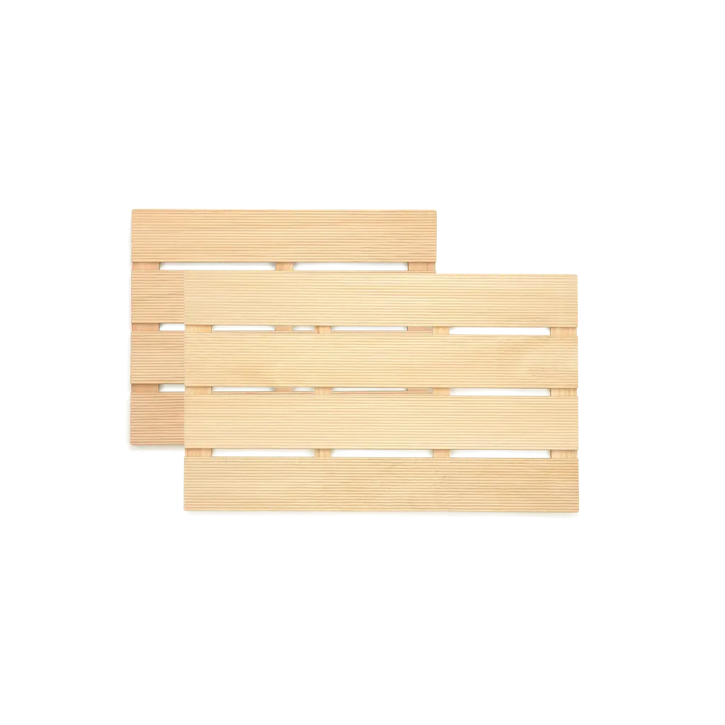 Tosaryu's Hinoki bath mat brings the warmth of natural wood and a calming touch of nature to your bathroom, sauna or balcony. Made from hinoki, Japanese cypress, the bath mat feels wonderfully comfortable underfoot: it keeps your feet warm while allowing water to effortlessly flow through its wooden slats. Thanks to the naturally water-resistant material, the Hinoki bath mat dries quickly. The mat also works beautifully as an entryway mat, warmly welcoming anyone who steps inside.