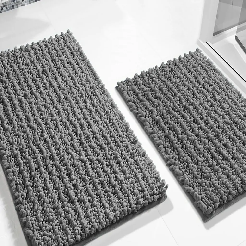 Elevate your bathroom aesthetic with this bath mat set featuring a minimalist design. This bath mat is an excellent decorative choice to elevate any bathroom. The microfiber pile instantly soaks up moisture from wet feet. It's ideal for placement next to a bathtub or shower entrance, quickly soaking up water as you step out of the bath, shower, or while getting ready by the sink SIZE: 1 bath mat (16" x 24") & 1 bath mat (32" x 20"). MATERIALS: 100% polyester with a non-slip backing. Fiber that's incredibly soft and durable. Our rugs use thousands of ultra-soft and plush, shaggy chenille fibers for that sensational, cloud-like feeling when you step out of the shower. SOFT & COMFORTABLE: Step into luxury after bath or shower with this soft, quality super soft bath rug set. Super soft and cozy, skin-friendly, relieve pressure and fatigue on your feet. WATER ABSORBENT: Our bath rugs are made with hundreds of individual piles. The thick chenille fabrics absorb water quickly to help your floors from dripping water while you're getting out of the bath. Moisture is trapped in the mat's high pile, allowing the bath rug to dry quickly. MACHINE WASHABLE: These chenille bath mats are easy to clean. Machine wash with cold water and mild detergent (no chlorine or bleach) tumble dry at low speed or hang dry.