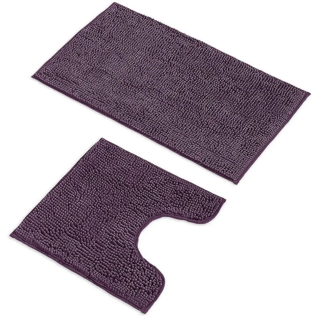 Home Mart Goods 2 Piece Set Plum Soft Cozy Plush Chenille Bath Mat Bathroom Rug