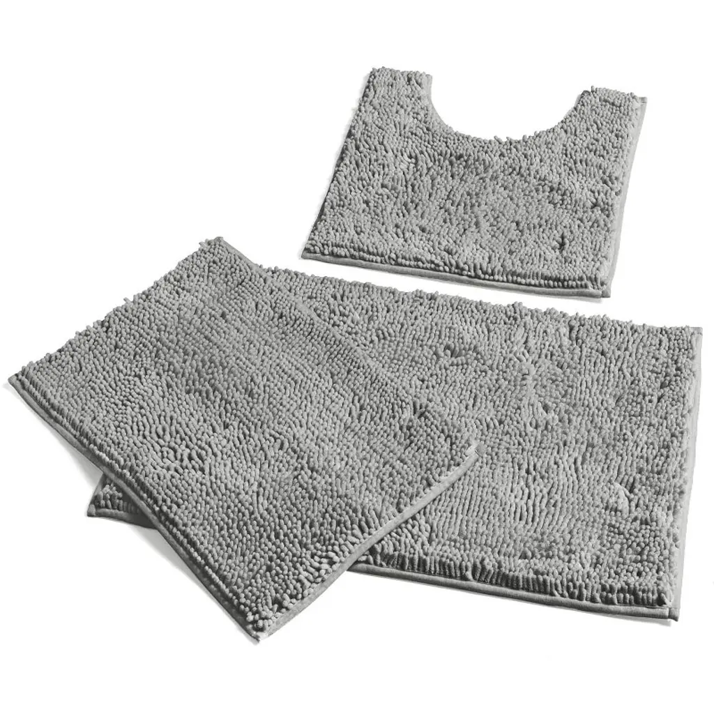 Home Mart Goods 3 Piece Set Light Grey Soft Cozy Plush Chenille Bath Mat Highly Absorbent Bathroom Rug