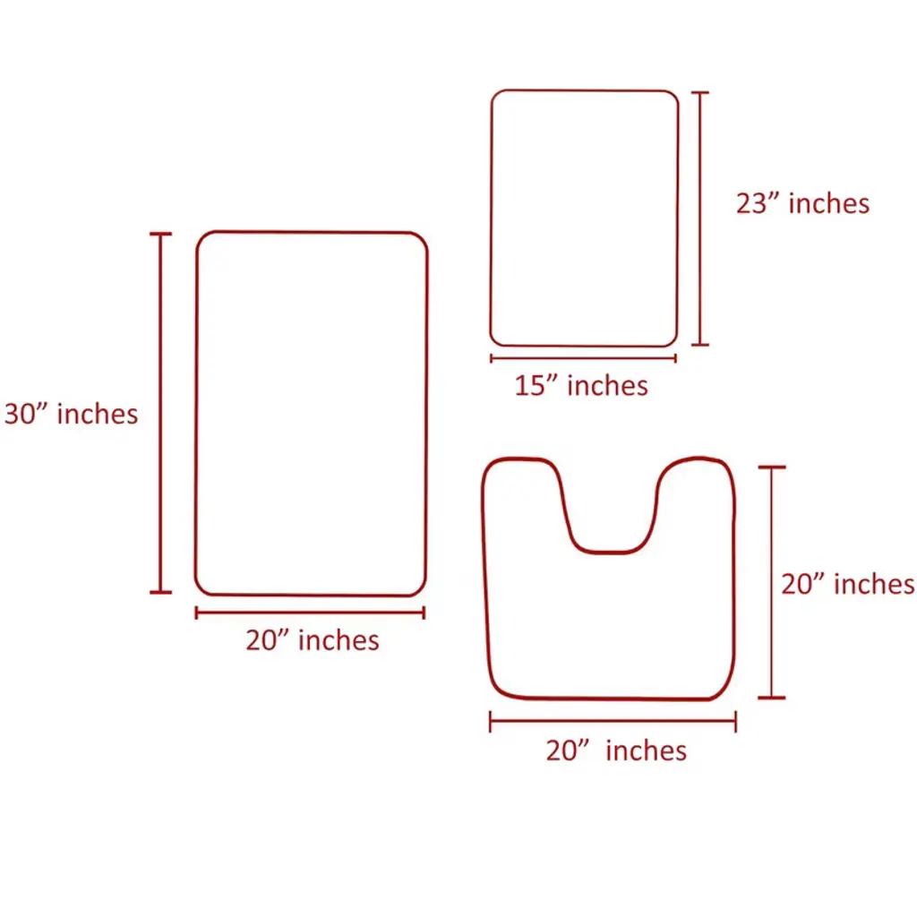 Step into luxury after bath or shower with this soft, quality super soft bath rug set. Super soft and cozy, skin-friendly, relieve pressure and fatigue on your feet. SIZES: 1 Rectangular Bath Mat (30"x20"), 1 Rectangular Bath Mat (23"x15") & 1 Contour Bath Mat (20"x20"). MATERIALS: 100% polyester with a non-slip backing. Fiber that's incredibly soft and durable. Our rugs use thousands of ultra-soft and plush, shaggy chenille fibers for that sensational, cloud-like feeling when you step out of the shower. SOFT & COMFORTABLE: Step into luxury after bath or shower with this soft, quality super soft bath rug set. Super soft and cozy, skin-friendly, relieve pressure and fatigue on your feet. WATER ABSORBENT: Our bath rugs are made with hundreds of individual piles. The thick chenille fabrics absorb water quickly to help your floors from dripping water while you're getting out of the bath. Moisture is trapped in the mat's high pile, allowing the bath rug to dry quickly. MACHINE WASHABLE: These chenille bath mats are easy to clean. Machine wash with cold water and mild detergent (no chlorine or bleach) tumble dry at low speed or hang dry.