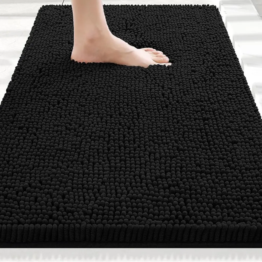 The thick and soft chenille bath rug makes your feet feel the ultimate luxury enjoyment. This bathroom rug is highly absorbent, quickly soaking up moisture and preventing slips and falls. This mat is made of high quality material. Machine washed and dried multiple times, it never fades and loses shape, and it comes in a variety of colors that go well with bathroom décor.SIZE: This Bath Mat measures 23"x15". MATERIALS: 100% polyester with a non-slip backing. Fiber that's incredibly soft and durable. Our rugs use thousands of ultra-soft and plush, shaggy chenille fibers for that sensational, cloud-like feeling when you step out of the shower.SOFT & COMFORTABLE: Step into luxury after bath or shower with this soft, quality super soft bath rug. Super soft and cozy, skin-friendly, relieve pressure and fatigue on your feet. WATER ABSORBENT: Our bath rugs are made with hundreds of individual piles. The thick chenille fabrics absorb water quickly to help your floors from dripping water while you're getting out of the bath. Moisture is trapped in the mat's high pile, allowing the bath rug to dry quickly.MACHINE WASHABLE: These chenille bath mats are easy to clean. Machine wash with cold water and mild detergent (no chlorine or bleach) tumble dry at low speed or hang dry.