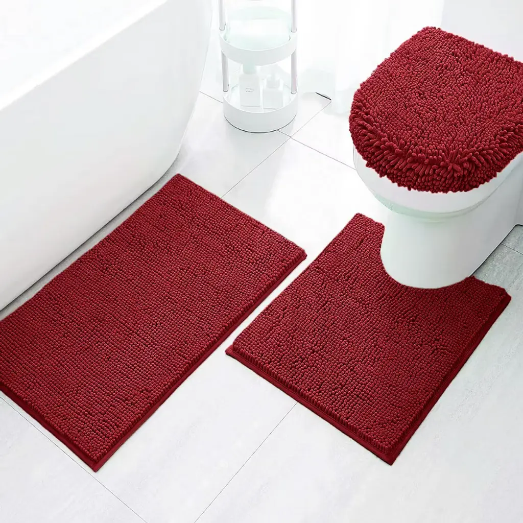 Step into luxury after bath or shower with this soft, quality super soft bath rug set. Super soft and cozy, skin-friendly, relieve pressure and fatigue on your feet. SIZE: This set includes 2 bath mats. The first Bath Mat measures 47"x27", the second Bath Mat measures 19"x19". MATERIALS: 100% polyester with a non-slip backing. Fiber that's incredibly soft and durable. Our rugs use thousands of ultra-soft and plush, shaggy chenille fibers for that sensational, cloud-like feeling when you step out of the shower. SOFT & COMFORTABLE: Step into luxury after bath or shower with this soft, quality super soft bath rug set. Super soft and cozy, skin-friendly, relieve pressure and fatigue on your feet. WATER ABSORBENT: Our bath rugs are made with hundreds of individual piles. The thick chenille fabrics absorb water quickly to help your floors from dripping water while you're getting out of the bath. Moisture is trapped in the mat's high pile, allowing the bath rug to dry quickly. MACHINE WASHABLE: These chenille bath mats are easy to clean. Machine wash with cold water and mild detergent (no chlorine or bleach) tumble dry at low speed or hang dry.